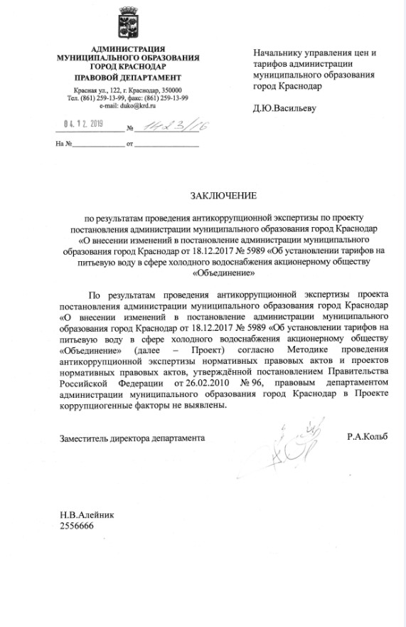 5 декабря 2019Наименование разработчика: Управление цен и тарифов администрации муниципального образования город Краснодар
