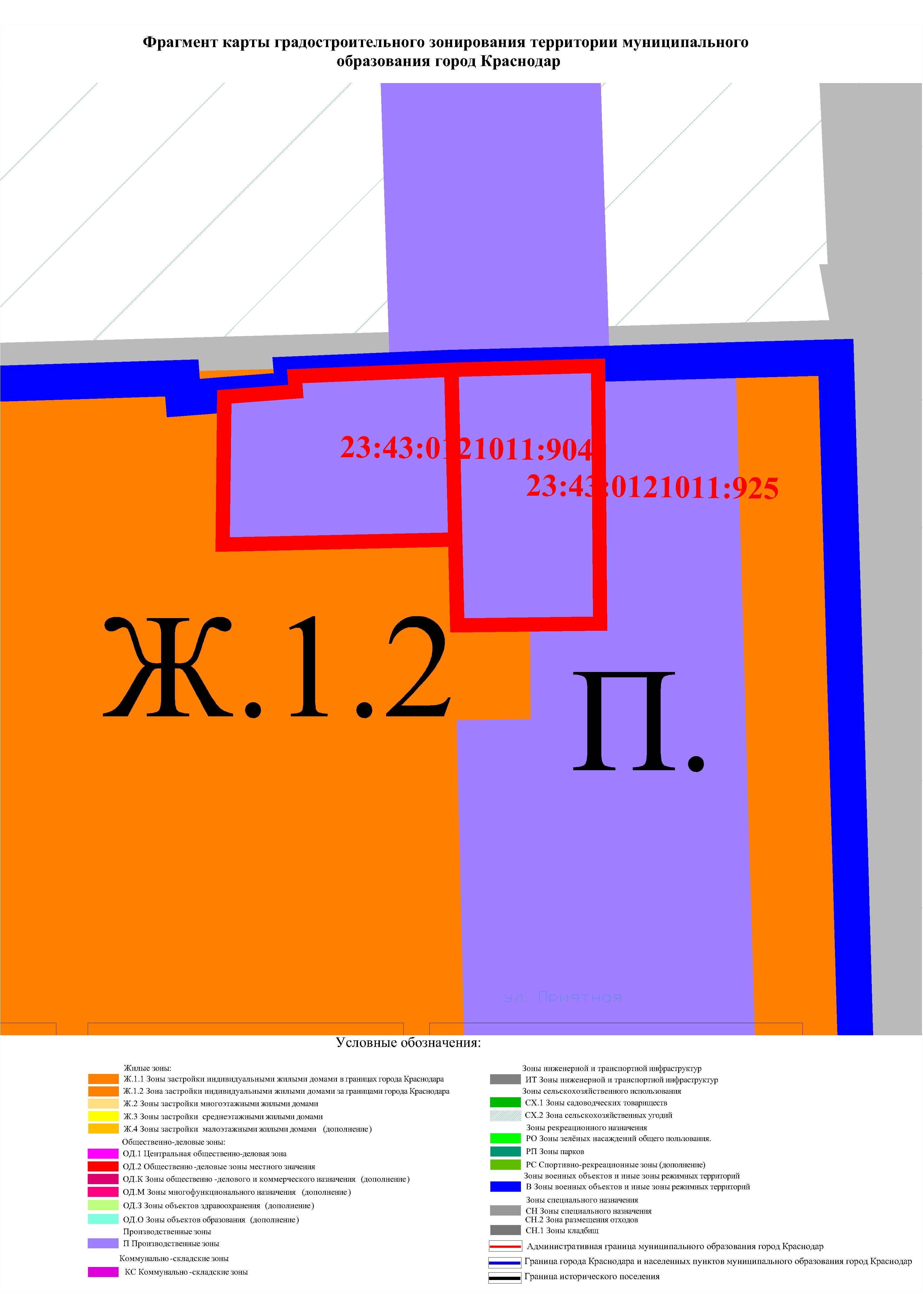 Материалы внесения изменений в Правила землепользования и застройки на территории муниципального образования город Краснодар в части изменения территориальной зоны в отношении земельных участков с кадастровыми номерами 23:43:0121011:904, 23:43:0121011:925, расположенных в посёлке Индустриальном, почтовое отделение № 56 в Калининском сельском округе муниципального образования город Краснодар