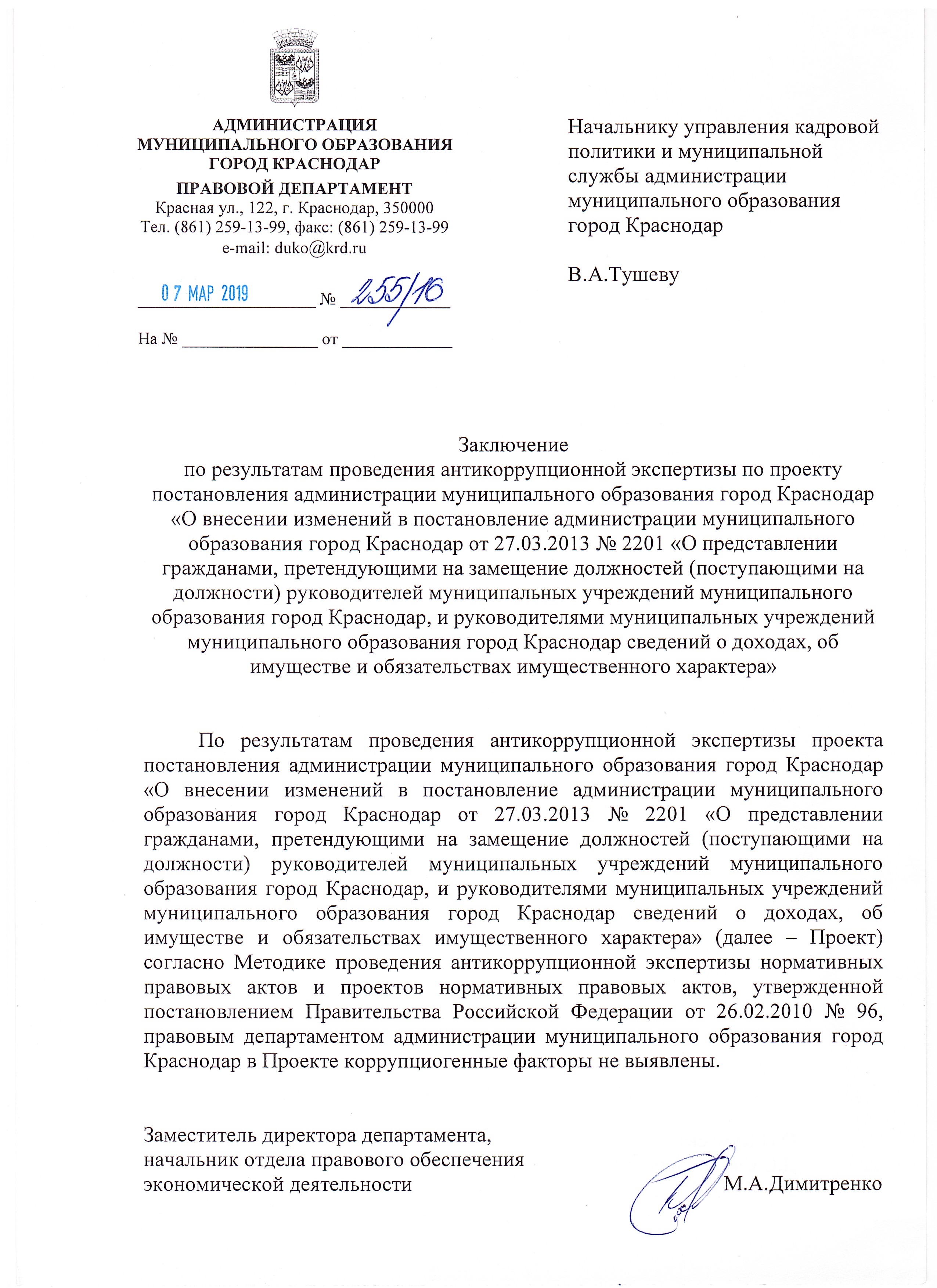 15 марта 2019Наименование разработчика: Управление кадровой политики и муниципальной службы администрации муниципального образования город Краснодар