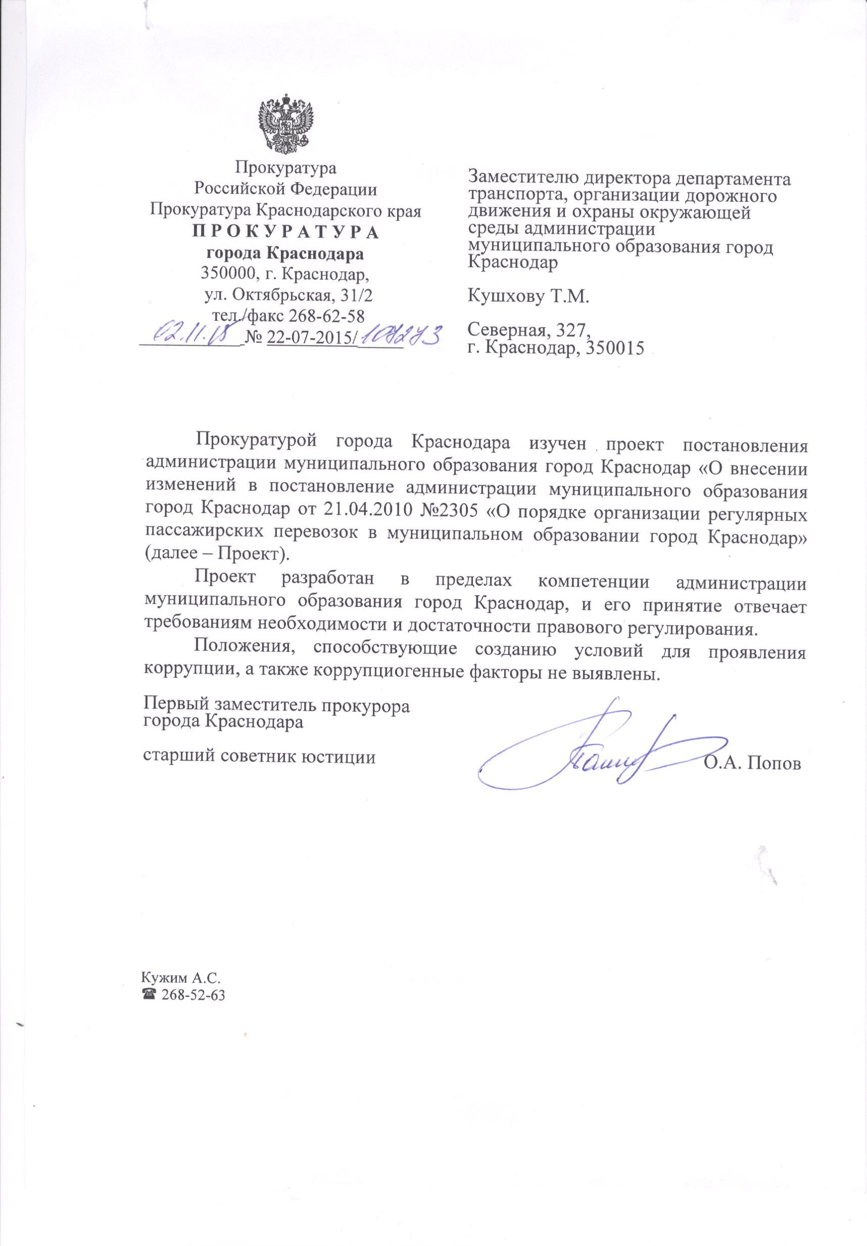 Проект постановления администрации муниципального образования город Краснодар О внесении изменений в постановление администрации муниципального образования город Краснодар от 21.04.2010 № 2305 «О порядке организации регулярных пассажирских перевозок в муниципальном образовании город Краснодар»