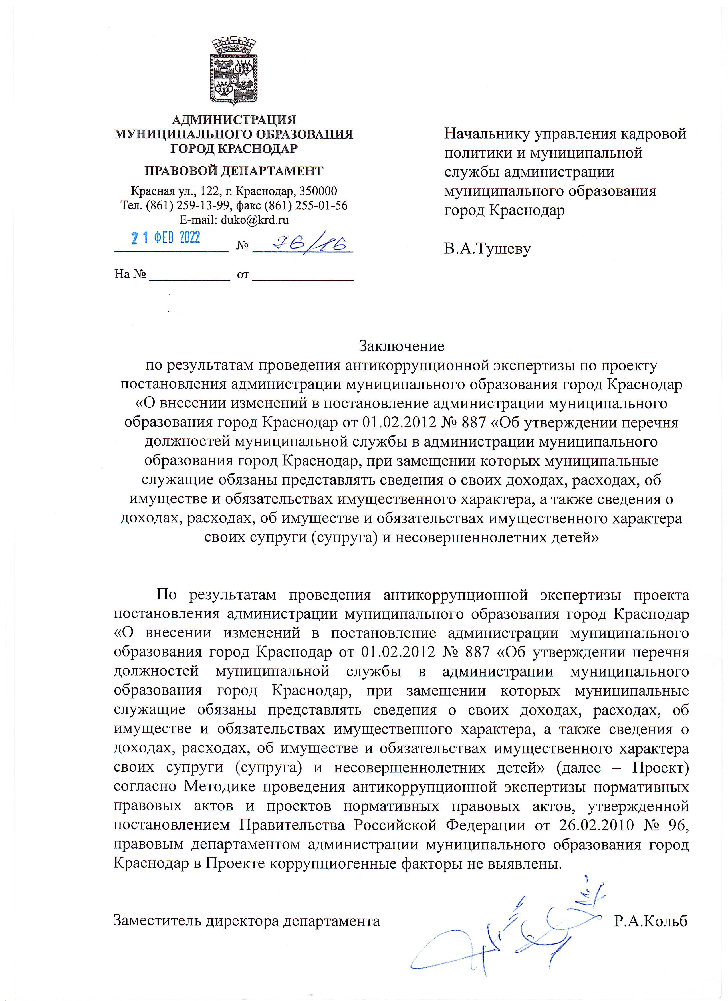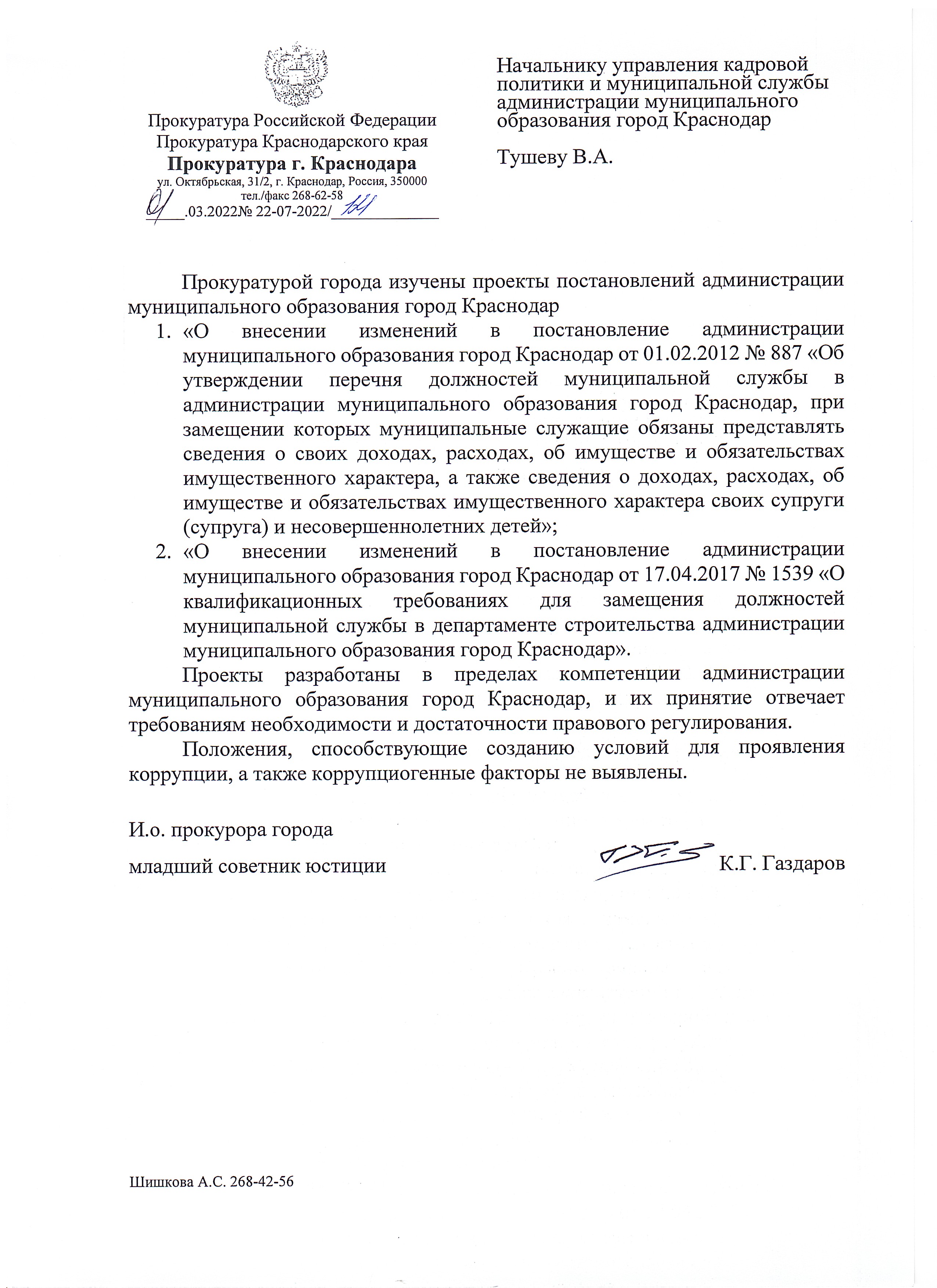 22 февраля 2022Наименование разработчика: Управление кадровой политики и муниципальной службы администрации муниципального образования город Краснодар