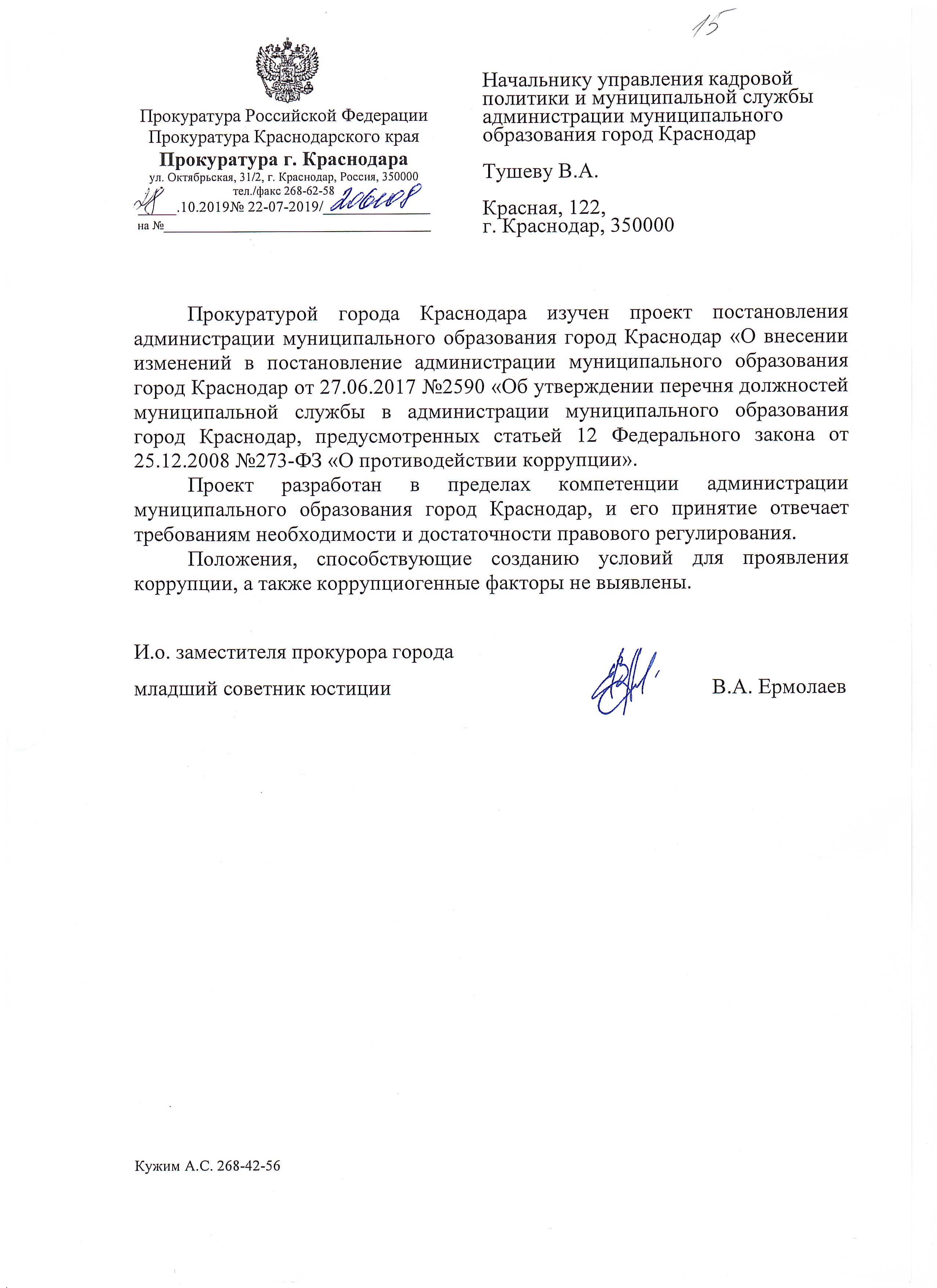 24 октября 2019Наименование разработчика: Управление кадровой политики и муниципальной службы администрации муниципального образования город Краснодар