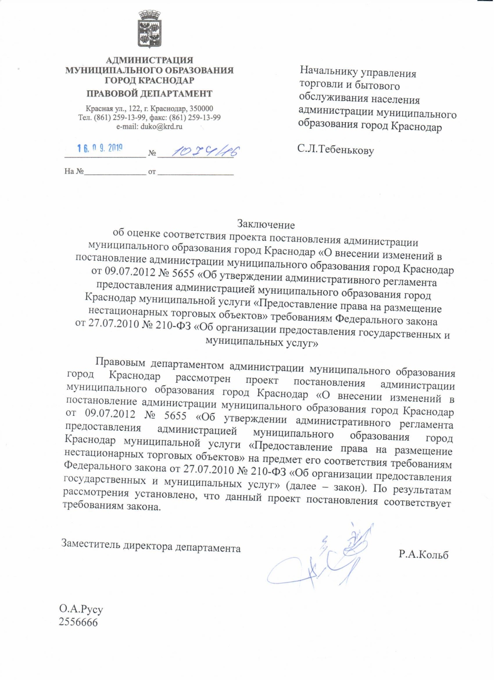 26 августа 2019Наименование разработчика: Управление торговли и бытового обслуживания населения администрации муниципального образования город Краснодар