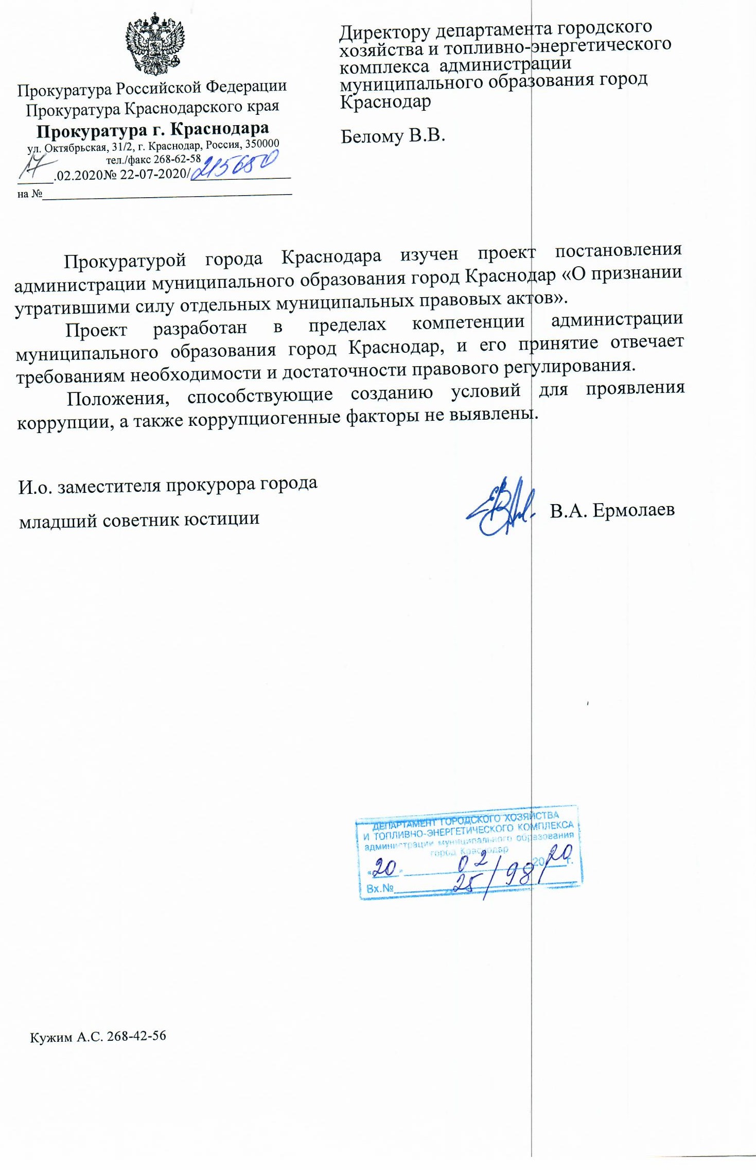 27 января 2020Наименование разработчика: Департамент городского хозяйства и топливно-энергетического комплекса администрации муниципального образования город Краснодар