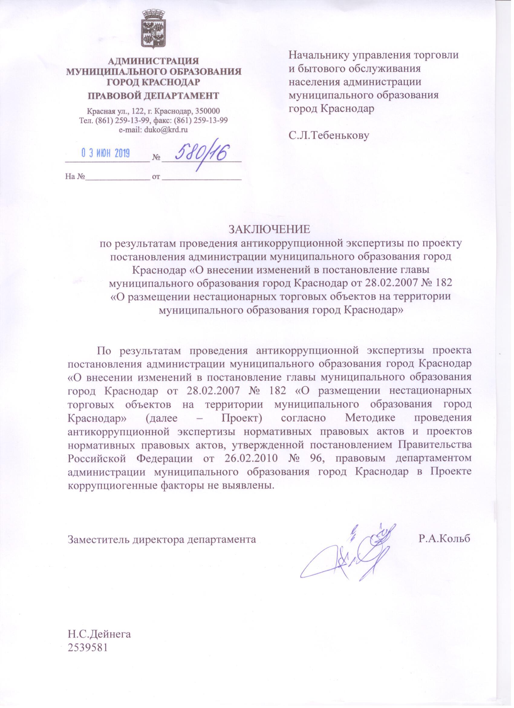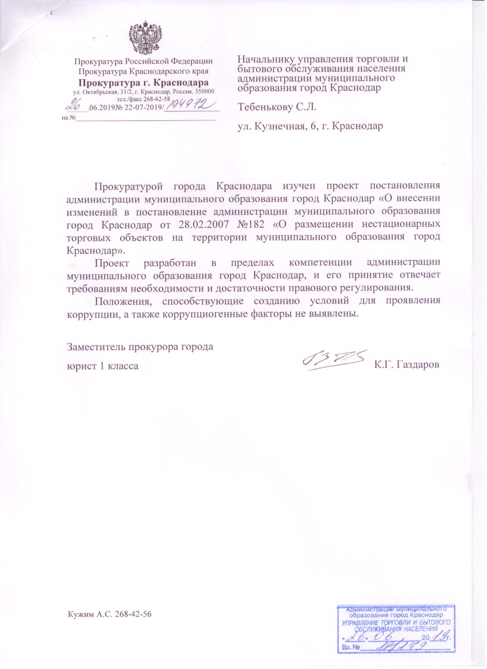 Проект постановления администрации муниципального образования город Краснодар «О внесении изменений в постановление главы муниципального образования город Краснодар от 28.02.2007 № 182 «О размещении нестационарных торговых объектов на территории муниципального образования город Краснодар»