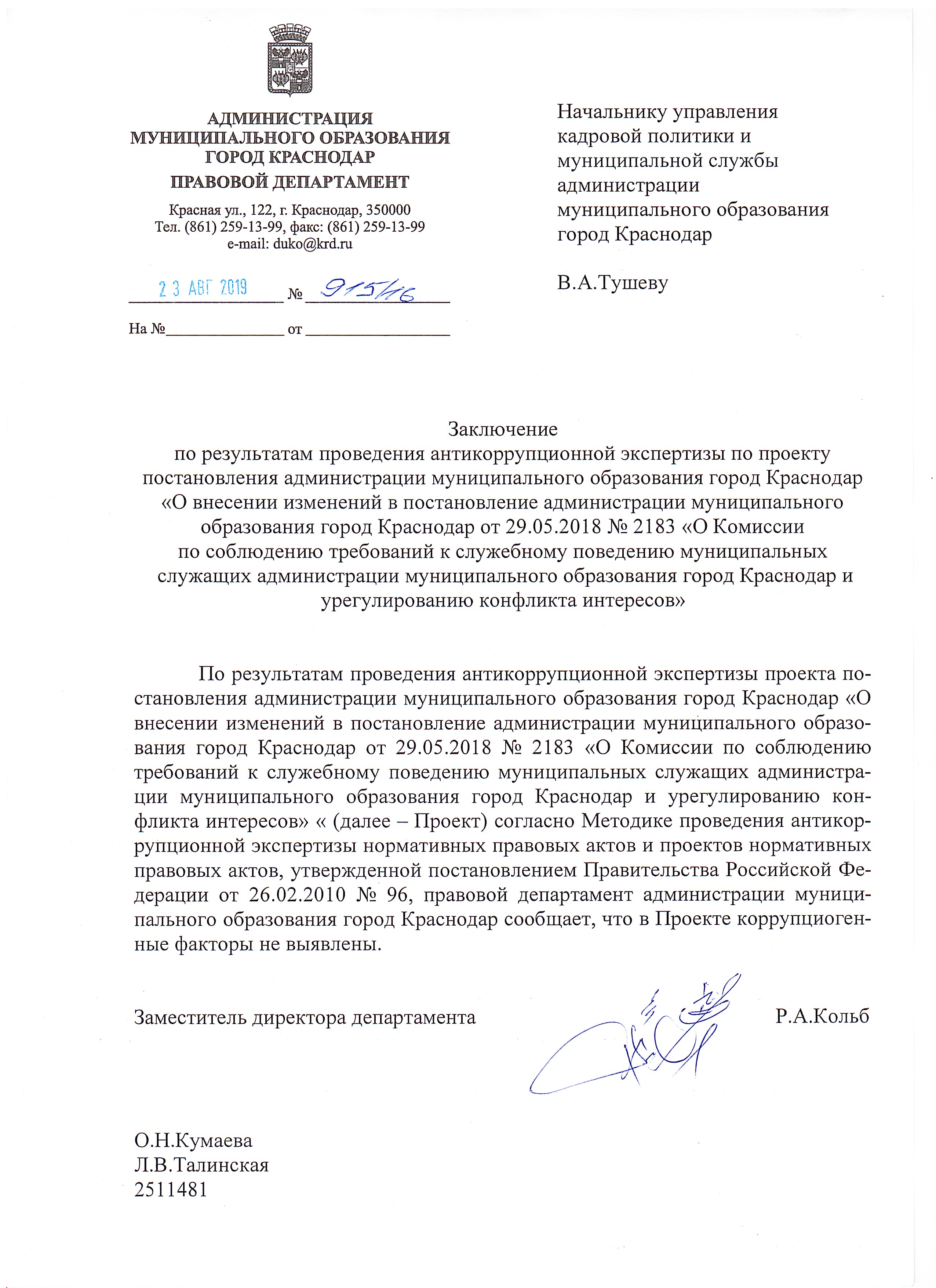 28 августа 2019Наименование разработчика: Управление кадровой политики и муниципальной службы администрации муниципального образования город Краснодар