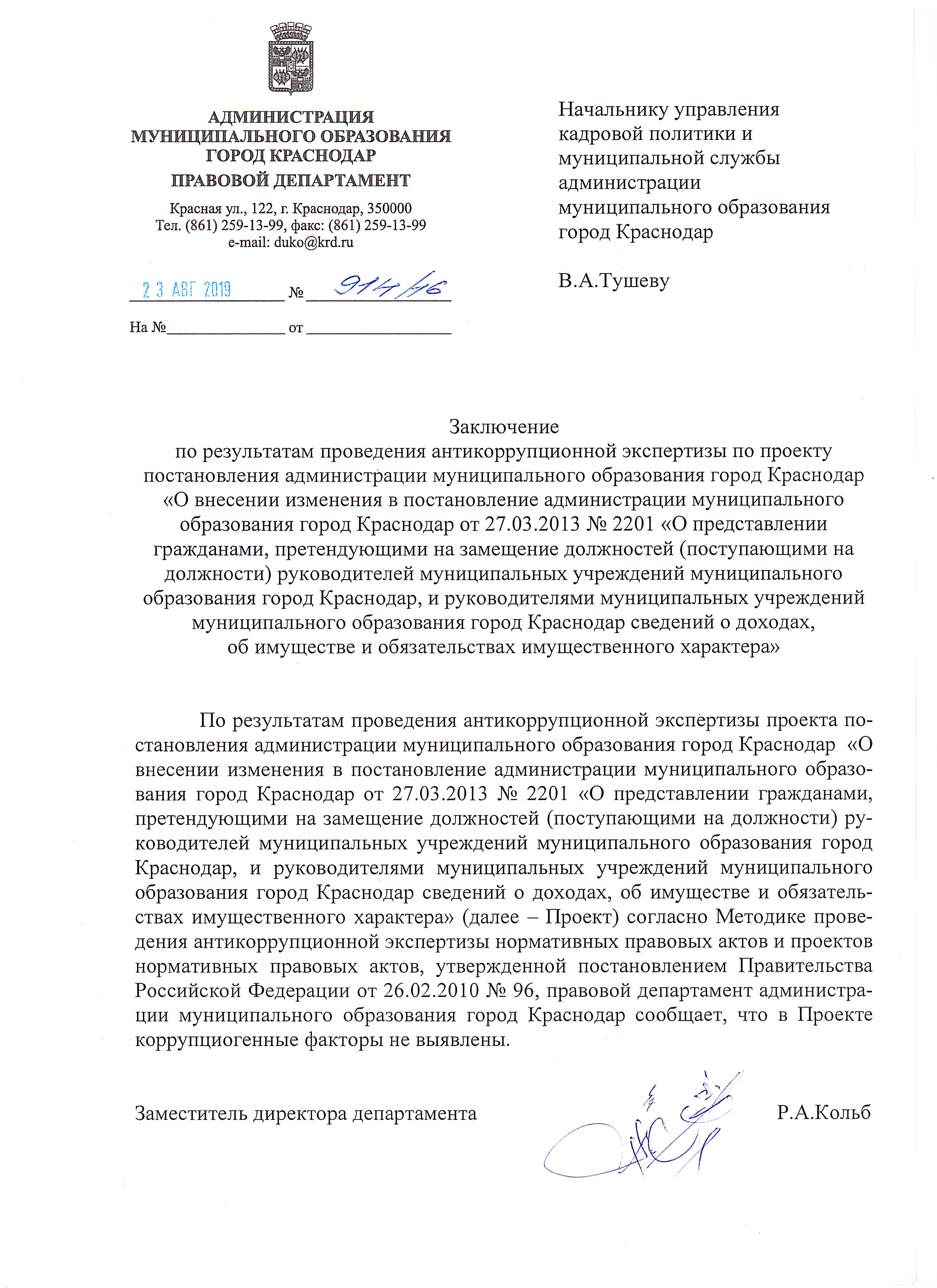 28 августа 2019Наименование разработчика: Управление кадровой политики и муниципальной службы администрации муниципального образования город Краснодар