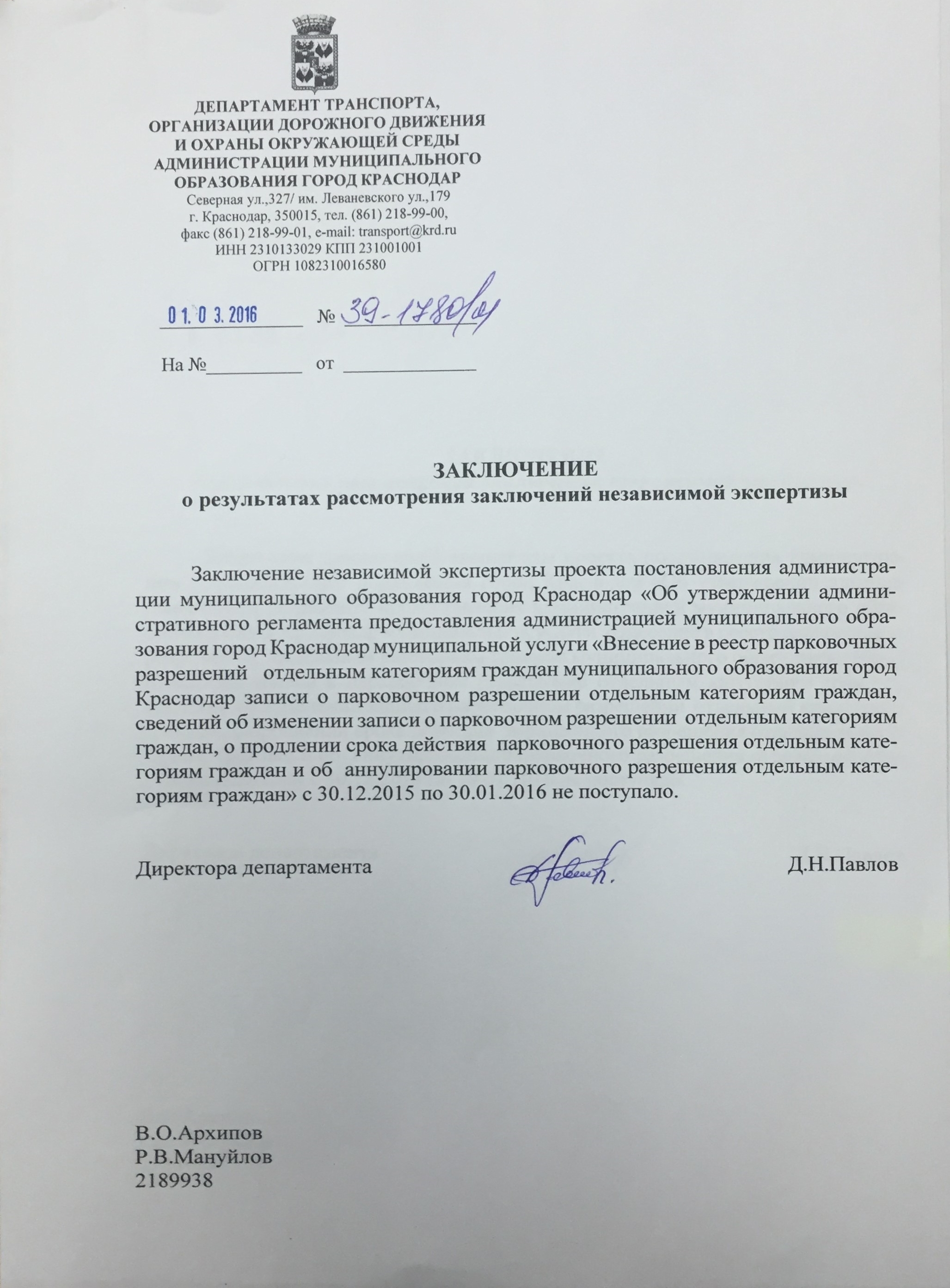 30 декабря 2015Наименование разработчика: Департамент транспорта, организации дорожного движения и охраны окружающей среды администрации муниципального образования город Краснодар