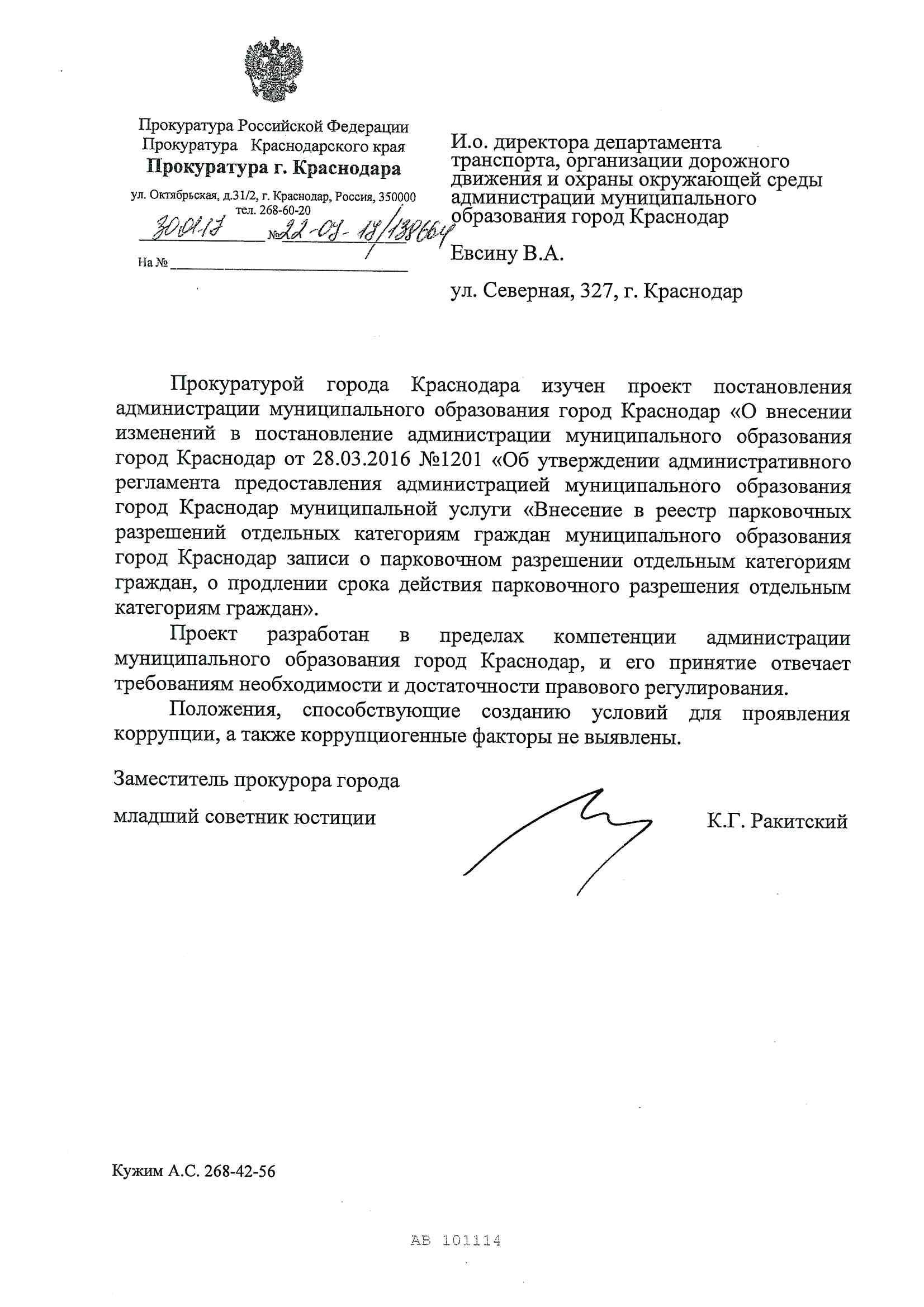 Постановление администрации муниципального образования город Краснодар от 06.02.2017г. № 452 О внесении изменений в постановление администрации муниципального образования город Краснодар от 28.03.2016 № 1201 «Об утверждении административного регламента предоставления администрацией муниципального образования город Краснодар муниципальной услуги «Внесение в реестр парковочных разрешений отдельным категориям граждан муниципального образования город Краснодар записи о парковочном разрешении отдельным категориям граждан, сведений об изменении записи о парковочном разрешении отдельным категориям граждан, о продлении срока действия парковочного разрешения отдельным категориям граждан и об аннулировании парковочного разрешения отдельным категориям граждан»