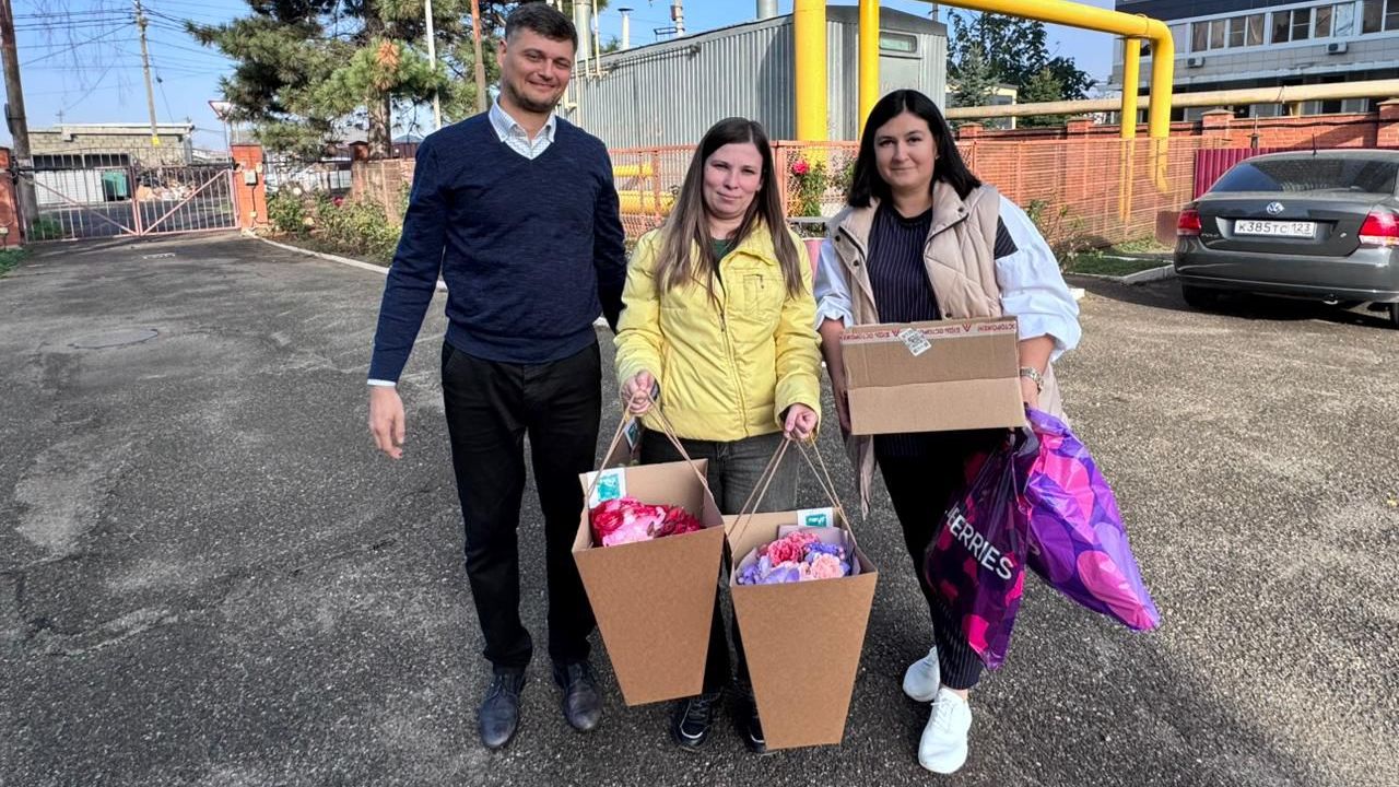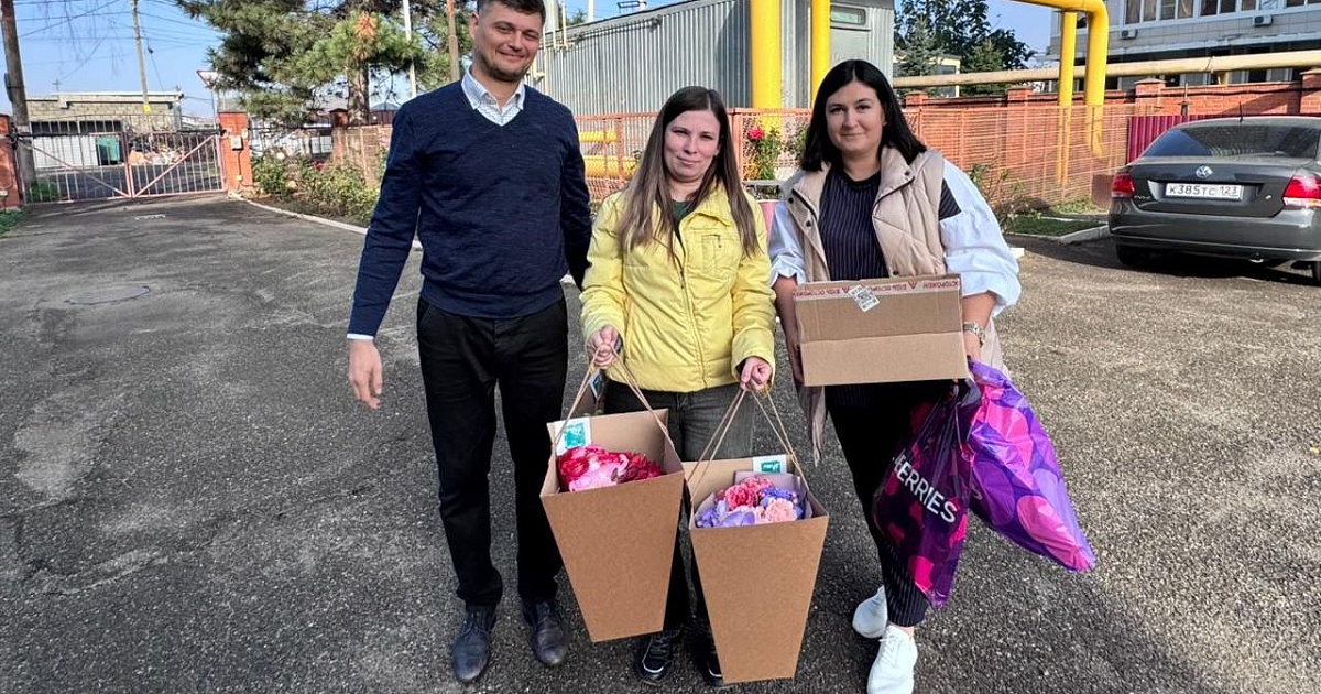 В рамках акции «Цветы доброты» мамам вручили букет, а также средства личной гигиены, подарочные наборы.