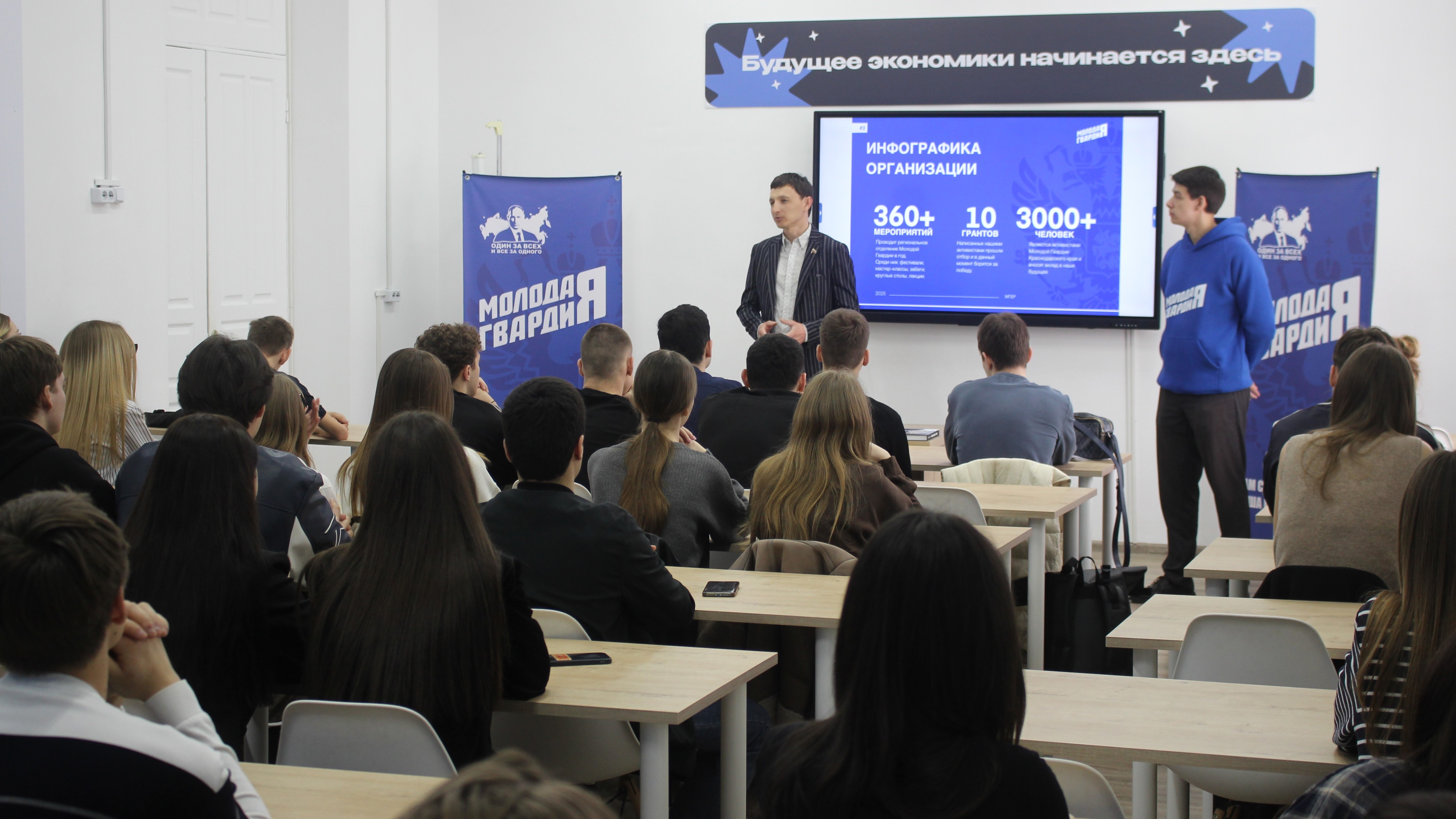 В рамках серии встреч с краснодарскими студентами, организованных совместно с Краснодарским городским отделением «Молодой Гвардии», депутат городской Думы Краснодара Роман Баранов провёл первую встречу в Кубанском государственном технологическом университете (КубГТУ). Мероприятие состоялось в историческом корпусе на улице Красной.