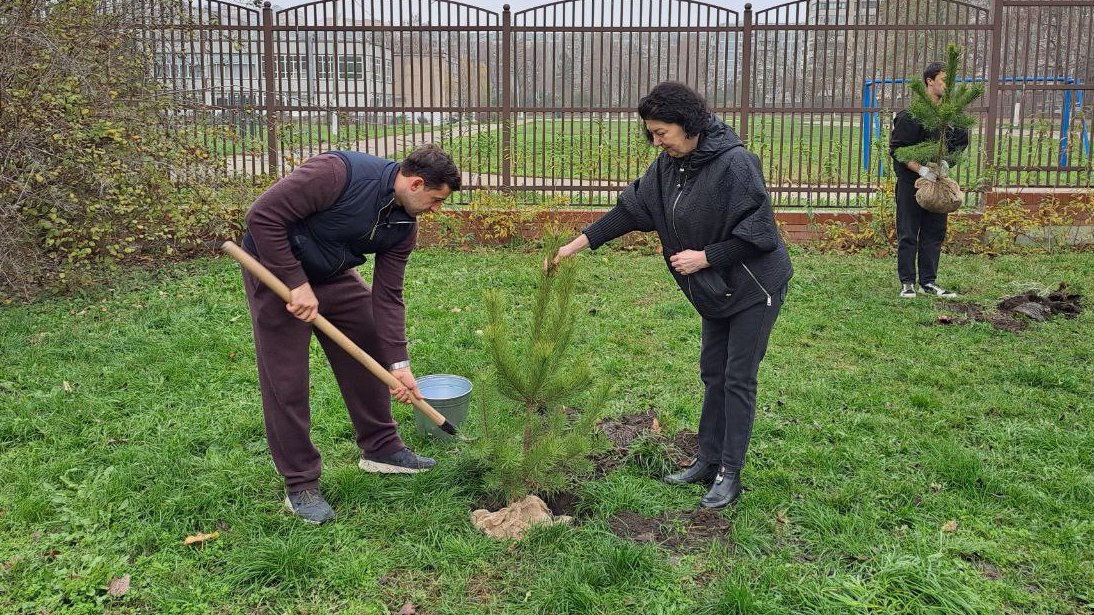 Пример показала председатель городской Думы Вера Галушко со своим заместителем Максимом Бурлачко, которые днями ранее высадили с помощниками на бульваре «Приозёрный» 150 кустов самшита.