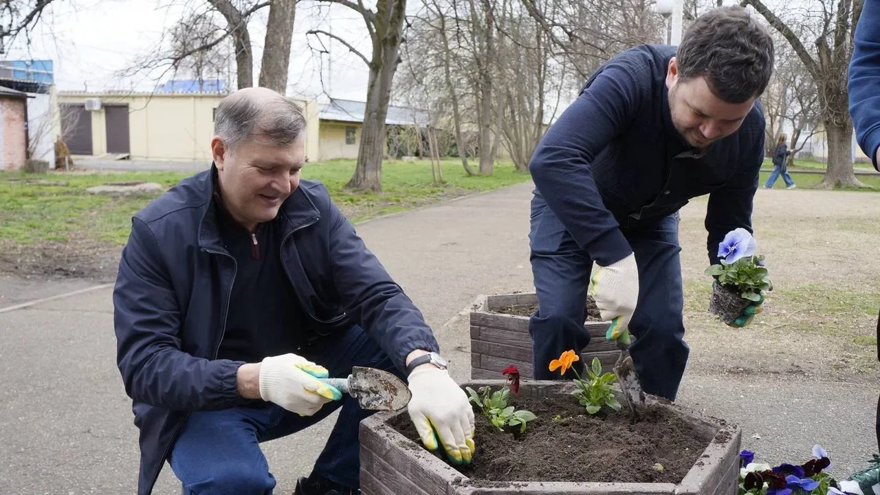 Депутат городской Думы Краснодара Павел Шапошников организовал субботник в сквере Казачьей Славы.