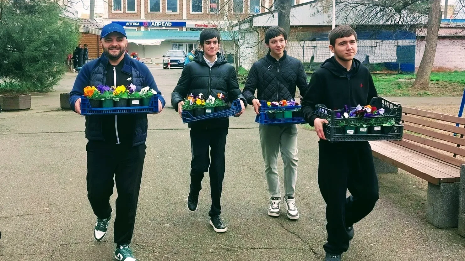 Работали дружно, общались, шутили, помогали друг другу. Высаживали цветы в вазоны, освежили краской детское игровое оборудование, навели порядок у памятников. Через пару часов территория стала выглядеть намного лучше.