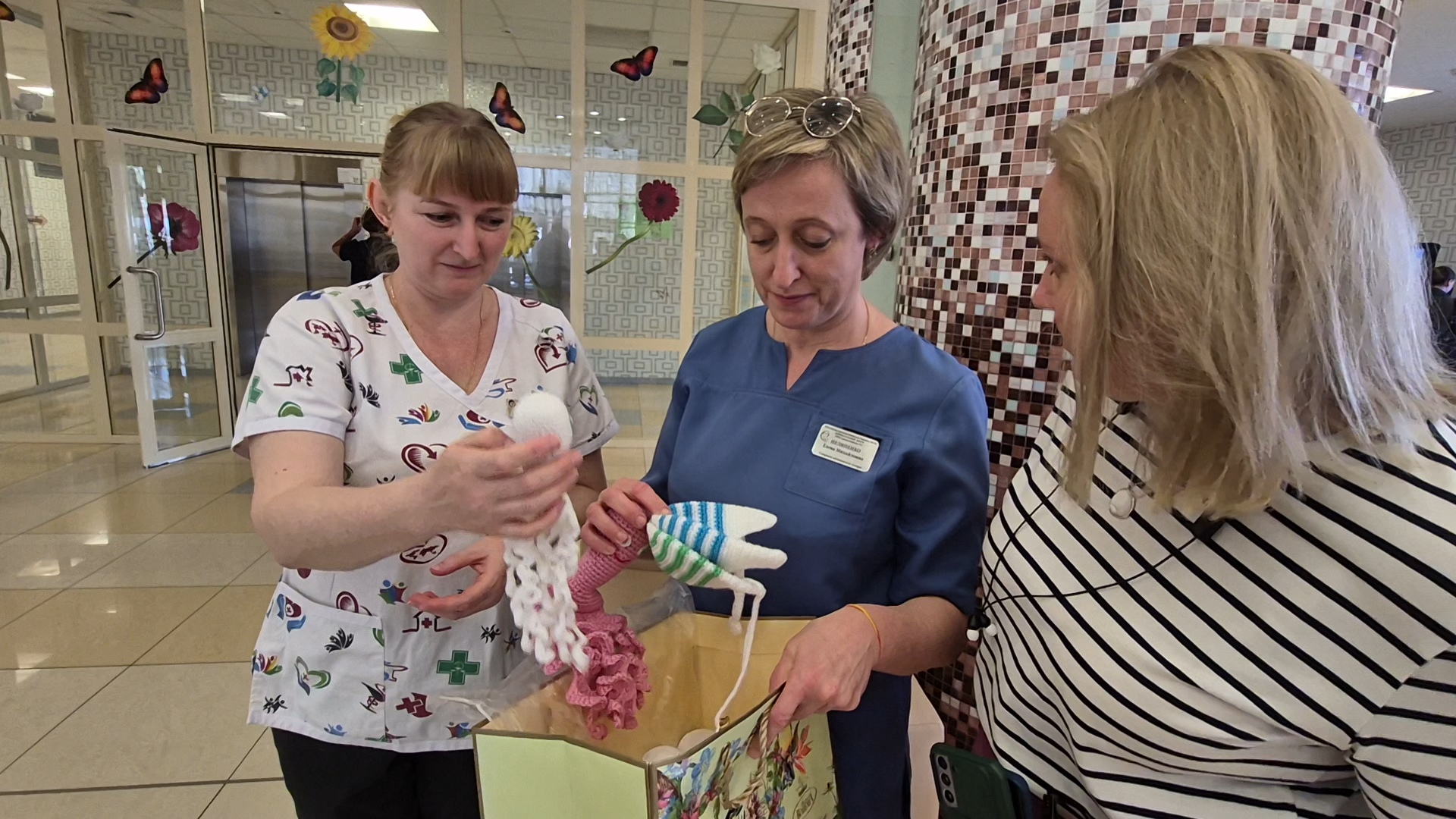 Георгий Кольцов с большим интересом ознакомился с работой медработников центра, особенно его поразила уникальная методика выхаживания новорожденных. Медицинский персонал рассказал о практике использования вязаных осьминожек, шапочек и пинеток для малышей, появившихся на свет с экстремально низкой массой тела. Врачи пояснили, что щупальца осьминожки имитируют пуповину, даря младенцам ощущение безопасности, а мягкие вязаные изделия помогают сохранять тепло и создают уют, необходимый для скорейшего роста.