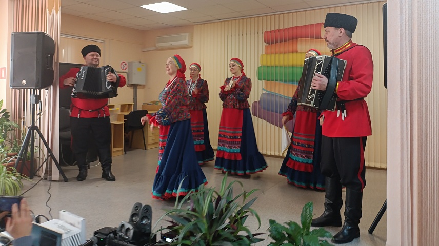 Также поздравить собравшихся в зале гостей пришли глава администрации Березовского сельского округа Андрей Козлов и иерей Максим Печеркин, настоятель строящегося храма святителя Тихона Патриарха Московского поселка Березового города Краснодара.