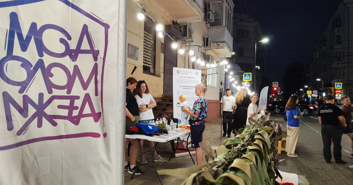 Сегодня на пешеходной части ул. им. Чапаева состоялся фестиваль «Добро Фест». Краснодарцы изготавливали маскировочные сети для солдат и писали им письма, реставрировали книги, создавали одежду, сувениры и поделки. Также каждый желающий мог пройти обучение по оказанию первой доврачебной помощи.