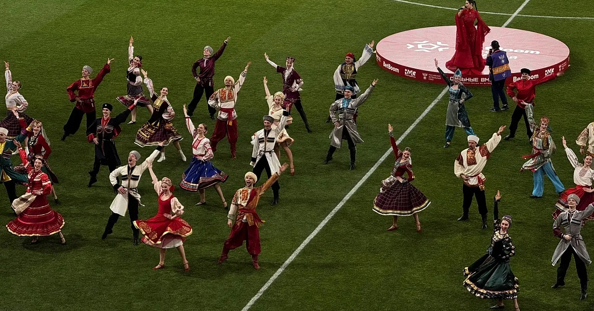 — Зрители двух стран следят за событием, которое проходит сейчас в Краснодаре. Честь открывать масштабное спортивное мероприятие досталась нашим городским коллективам. Гимн Российской Федерации исполнил народный хор из числа вокальных коллективов Краснодарской краевой филармонии им.