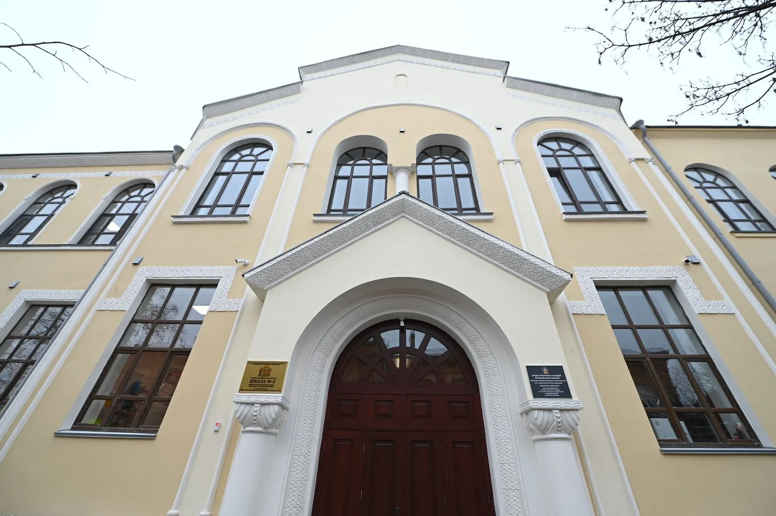 Также отреставрировали фасад здания, восстановив лепной декор начала прошлого века, и центральную лестницу, которая является объектом культурного наследия. На ней установили усиленное кованое ограждение. Кроме того, заменили деревянные входные двери. Современные мастера полностью повторили по сохранившимся эскизам рисунок и колер изделия начала прошлого века.