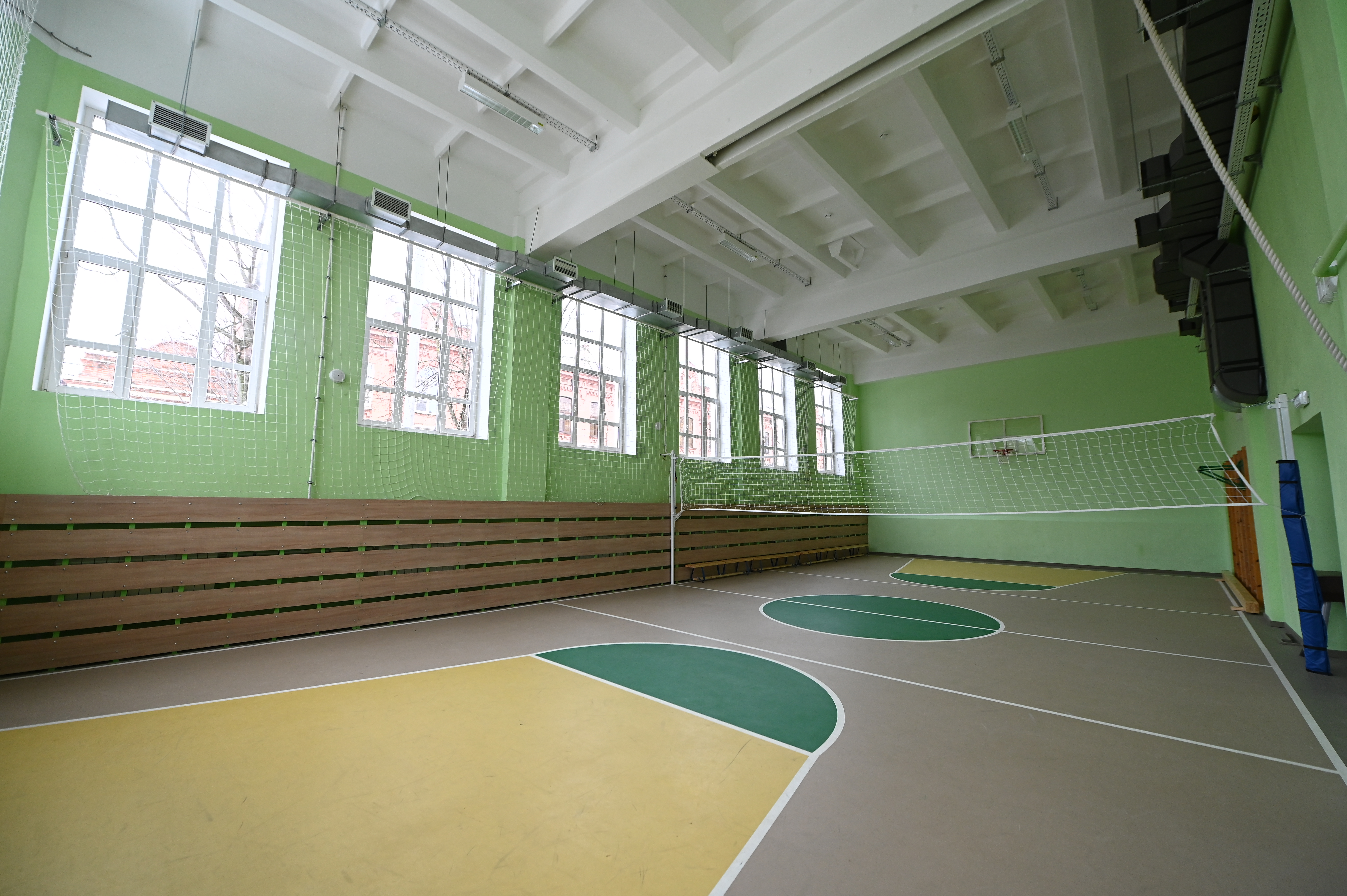 Работы длились полтора года. В здании капитально отремонтировали все этажи, заменили коммунальные системы, обеспечили меры безопасности, обновили учебные кабинеты и столовую на 75 мест. Сохранили полы из лиственницы, полностью преобразили актовый и спортивный залы.