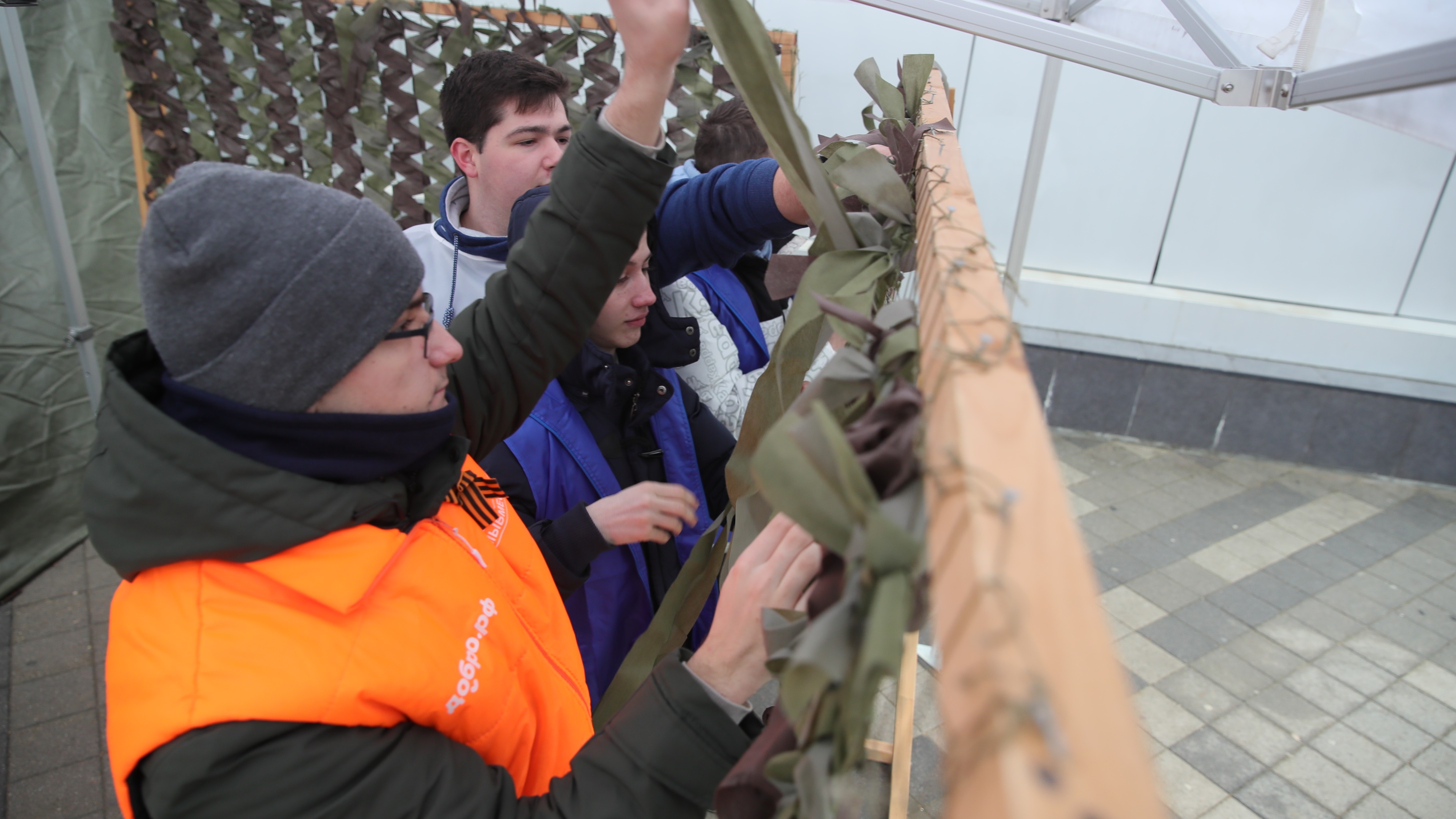Также около у Главной городской площади можно написать письмо или нарисовать послание воинам. Рядом волонтёры учат плетению маскировочных сетей, также организована выставка оружия.