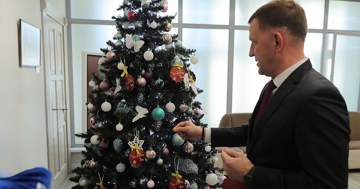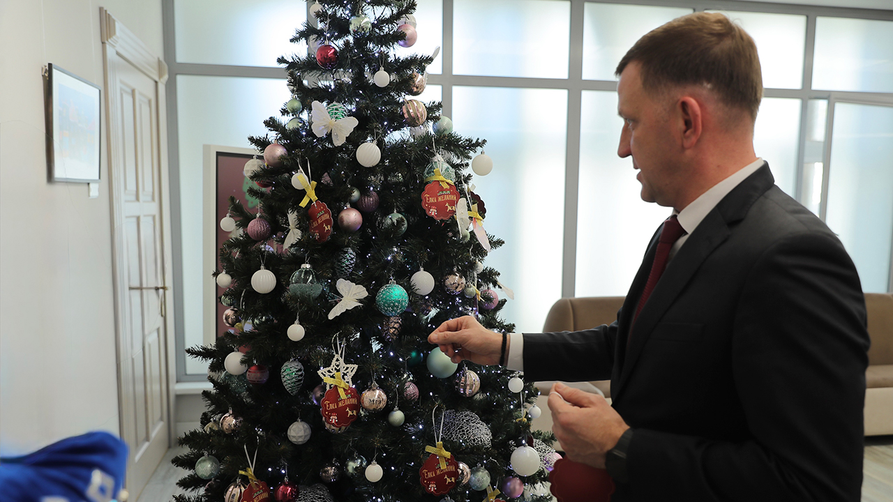 Председатель городского парламента сняла с ёлки три шара с пожеланиями детей. Она исполнит новогодние желания двух родных братьев — пятилетнего Ратмира и семилетнего Леонида, отец которых пропал без вести при выполнении задач в ходе СВО. И их семилетнего двоюродного брата Олега, чей папа взял ребят на воспитание в свою семью. Мальчишки мечтают о самокате с комплектом защиты, двухколёсном велосипеде и магнитном конструкторе.