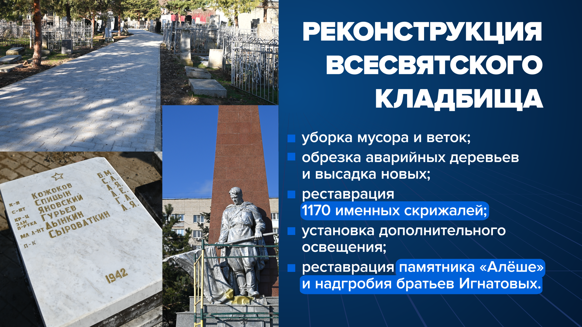 Начали активный этап реконструкции Всесвятского кладбища. На объекте культурного наследия регионального значения расчистили порядка 17 гектаров территории. До 9 мая мы обязаны завершить ремонт воинского и офицерского секторов этого святого для горожан места.