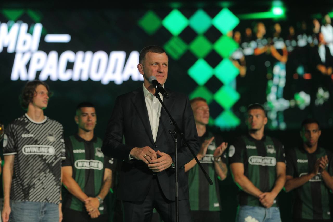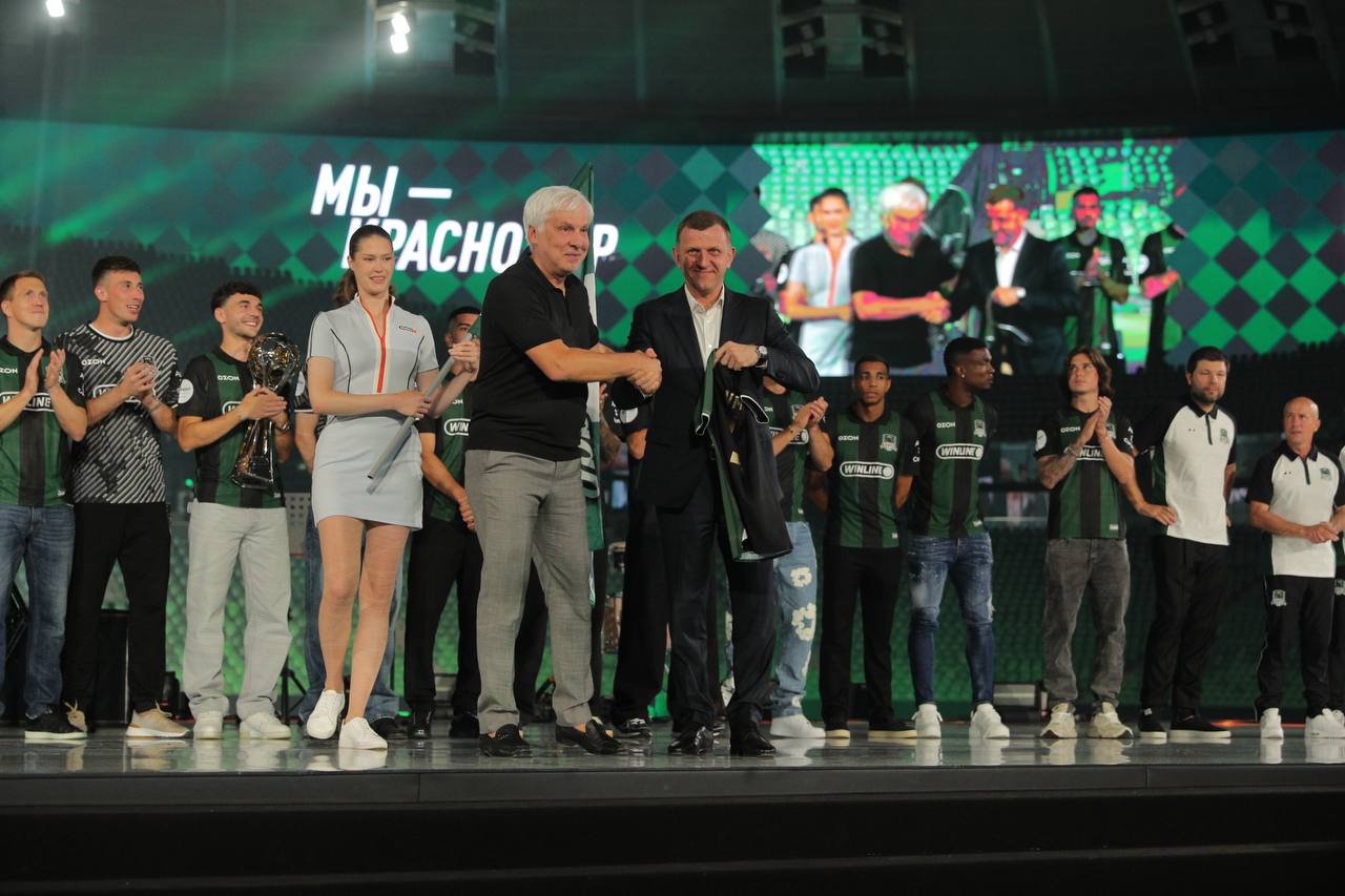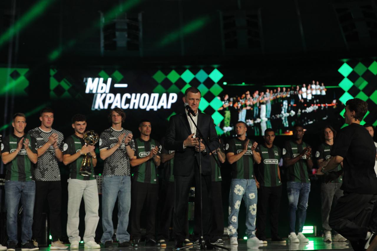 На мероприятии, посвященном чествованию чемпионов и презентации нового сезона, глава Краснодара поблагодарил команду за историческую победу и передал