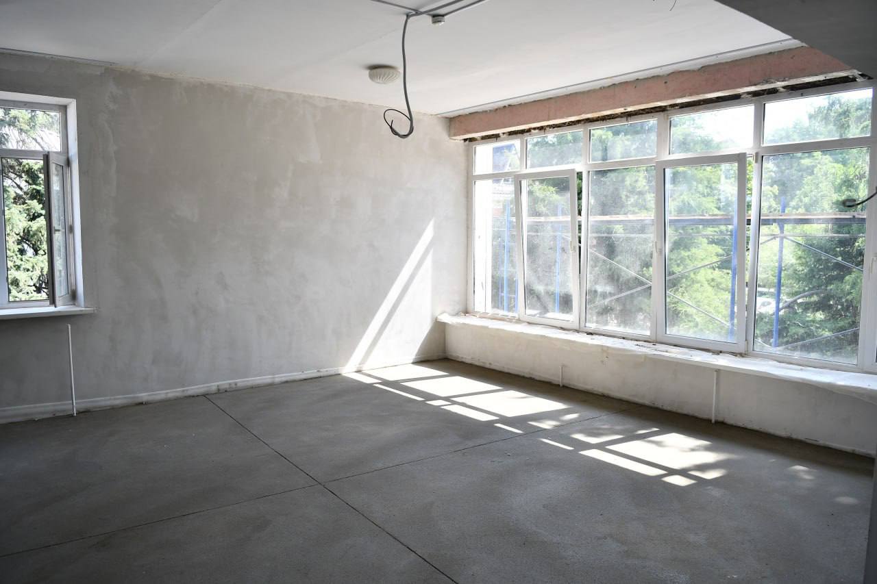 Ещё необходимо закончить стяжку полов во всех группах, отделку стен, потолков и фасадов строения, а также установить вентиляцию и противопожарные системы. По словам подрядчика, работы успеют завершить до конца сентября.