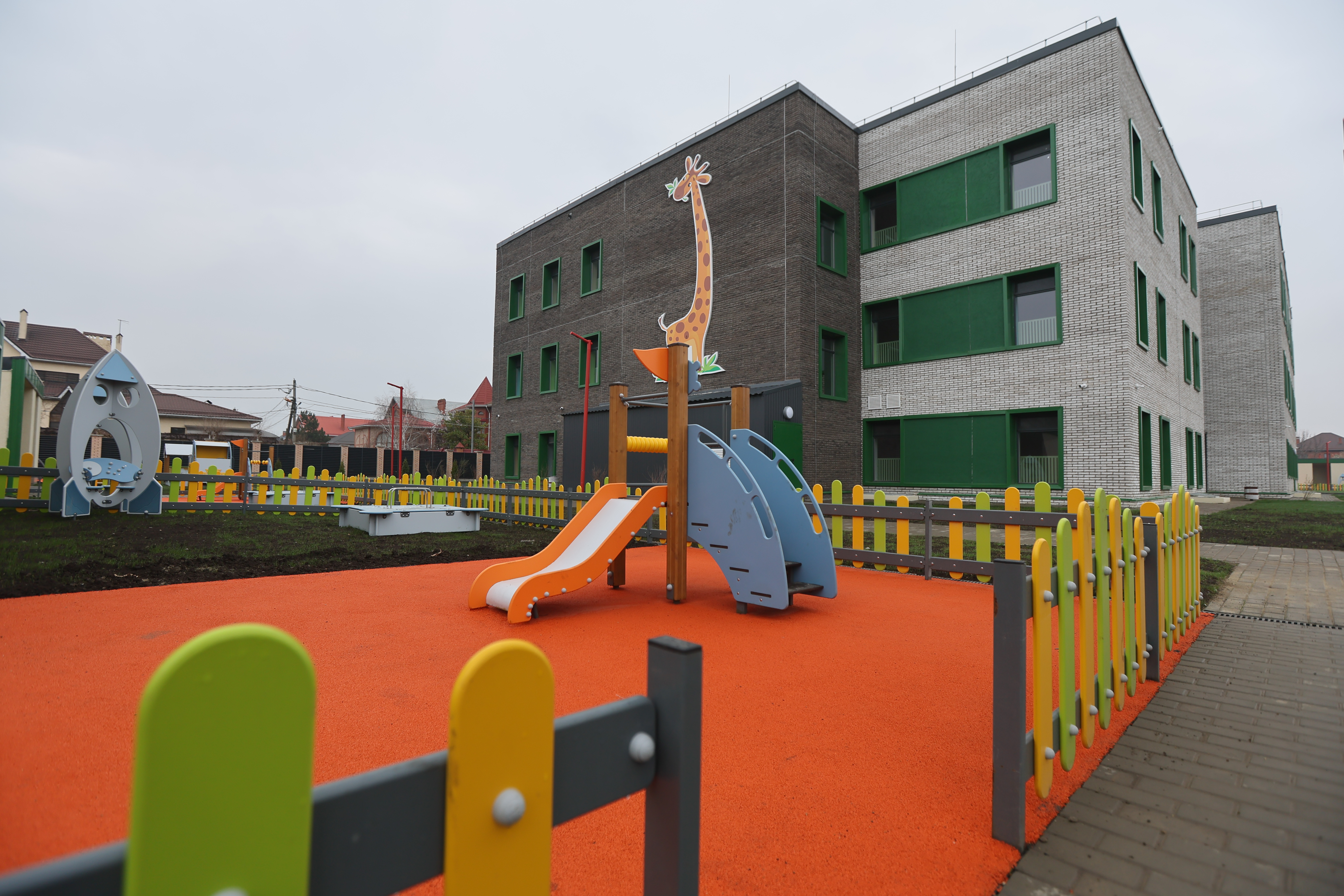 В трёхэтажном детсаду на 300 мест построили 16 групп, в том числе четыре ясельные, пищевой и медицинский блоки, музыкальный и спортивный залы, установили лифт.