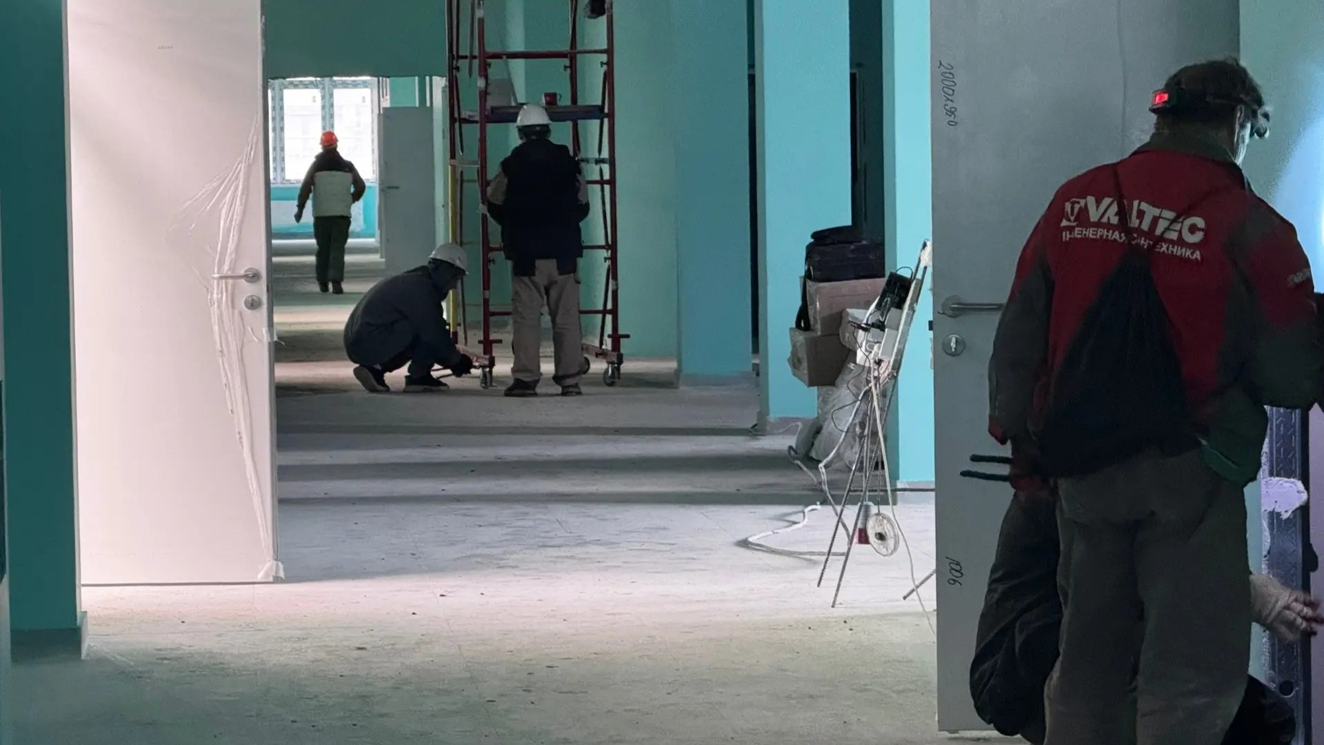 В настоящее время в образовательном учреждении рабочие выполняют устройство фасадов, внутреннюю отделку помещений, монтаж инженерных сетей и ограждения. Подрядчик сообщил, что сейчас готовность объекта составляет 80%.
