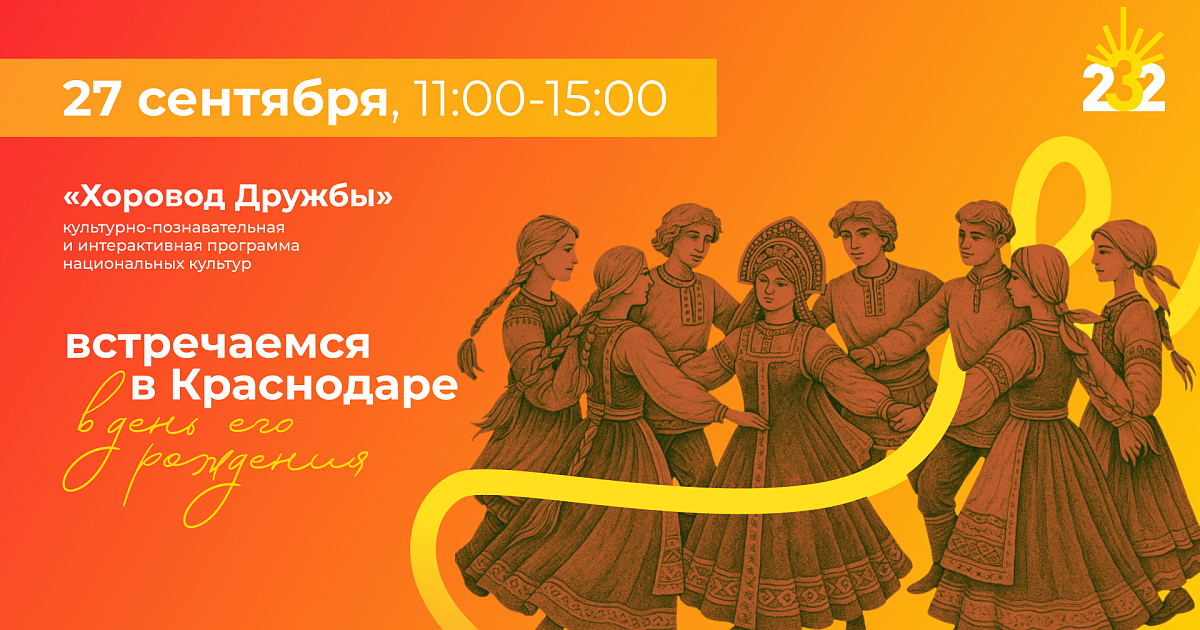 Народные игры, танцы, конкурсы: 27 сентября в Краснодаре пройдёт программа национальных культур «Хоровод дружбы»