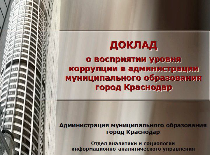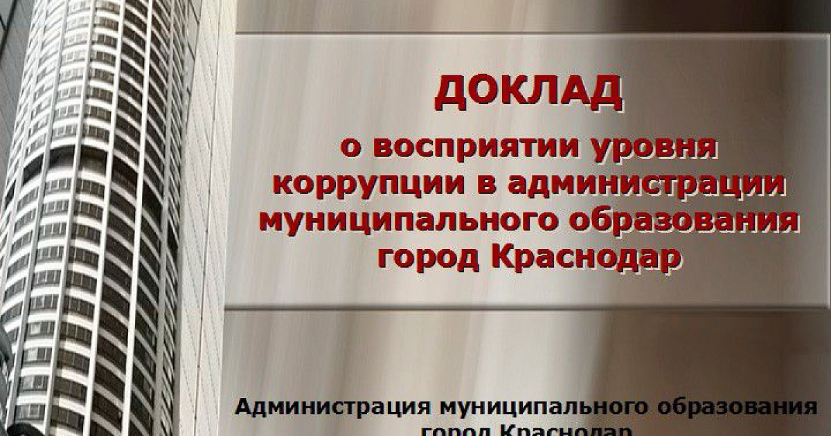 3 апреля 2013Администрация Краснодара представила ежегодный доклад о восприятии уровня коррупции в 2012 году, подготовленный по результатам масштабного социологического исследования.