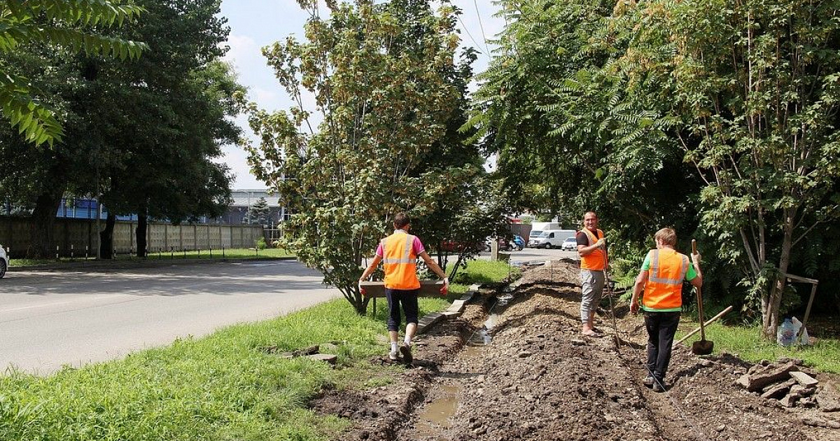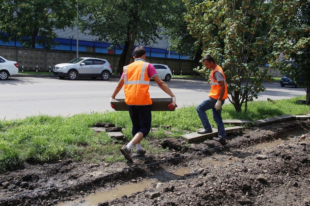 На месте старых металлических гаражей в Краснодаре отремонтируют тротуар