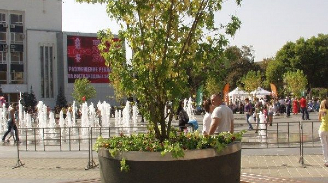 Деревья были установлены на Театральной площади в День города к началу проведения праздничного фестиваля «Краснодарские цветы» 29 сентября.