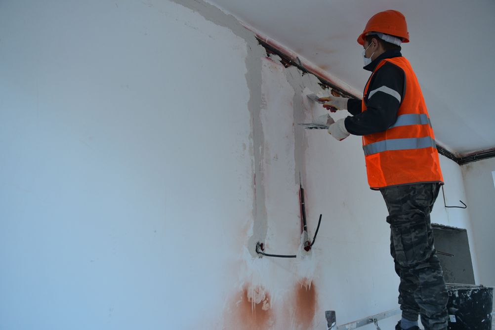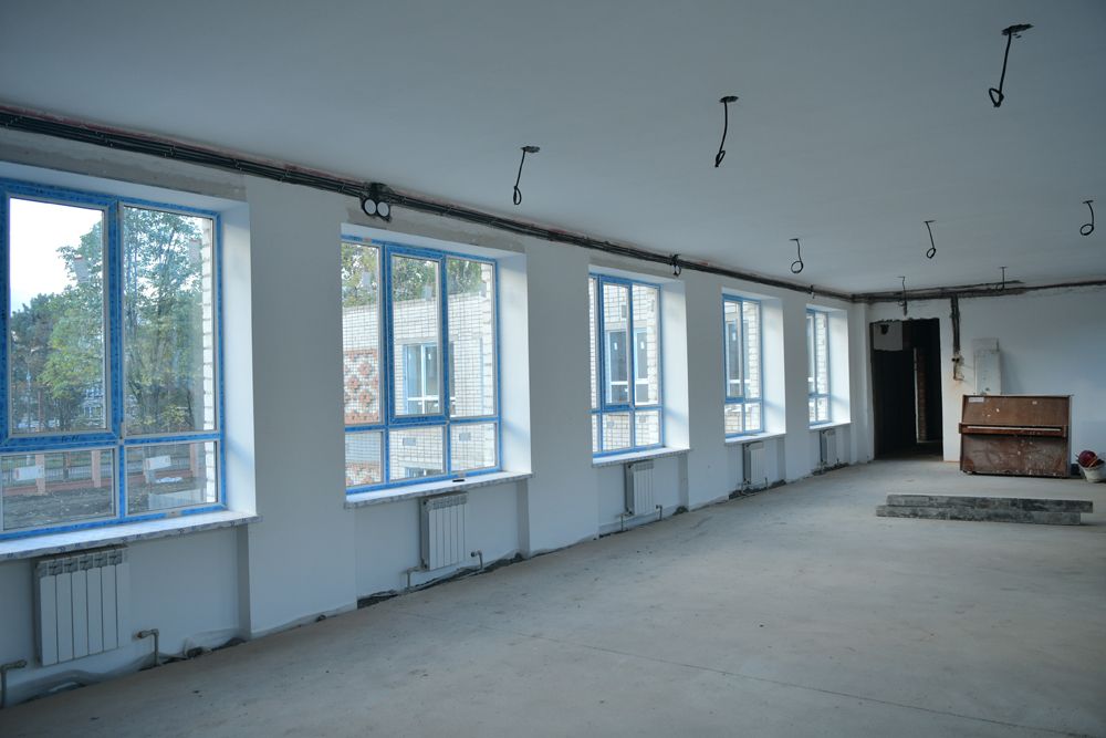 Полностью завершен капитальный ремонт кровли, выполнено устройство кирпичных перегородок, усиление дверных и оконных проемов, завершены работы по штукатурке и шпаклевке стен и потолков.