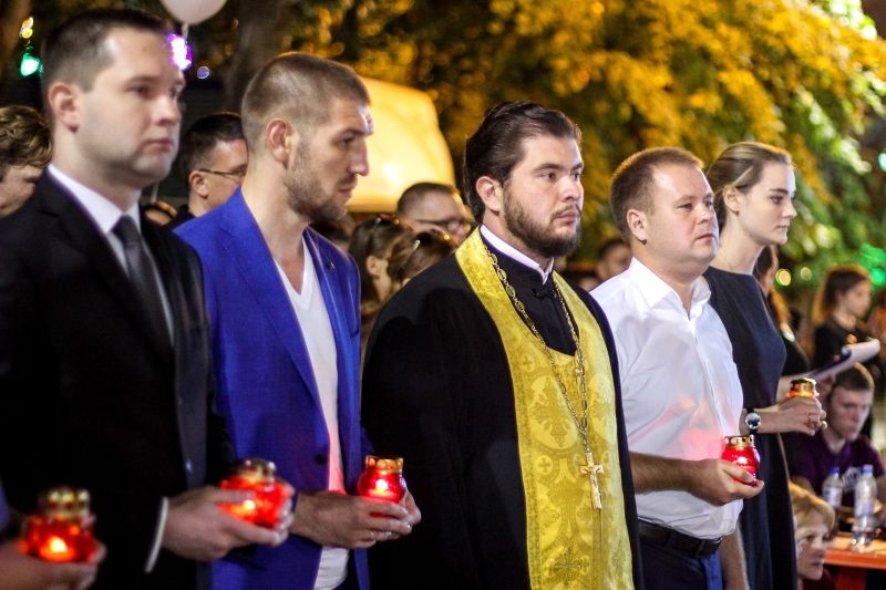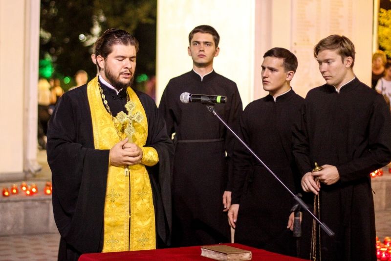 В ходе гражданской акции «Свеча памяти» прошла панихида по жертвам террористических актов, которую провел протоиерей, руководитель отдела по делам молодежи Екатеринодарской и Кубанской Епархии Дмитрий Руднев.