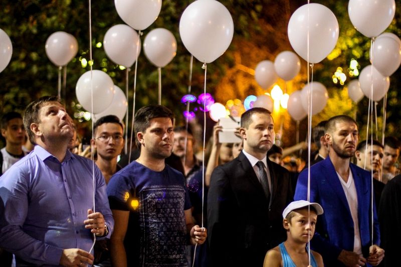 В завершении участники гражданской акции «Свеча памяти» выпустили в небо более 300 белых шаров, символизирующих невинно погибших граждан во время террористических актов в стране.