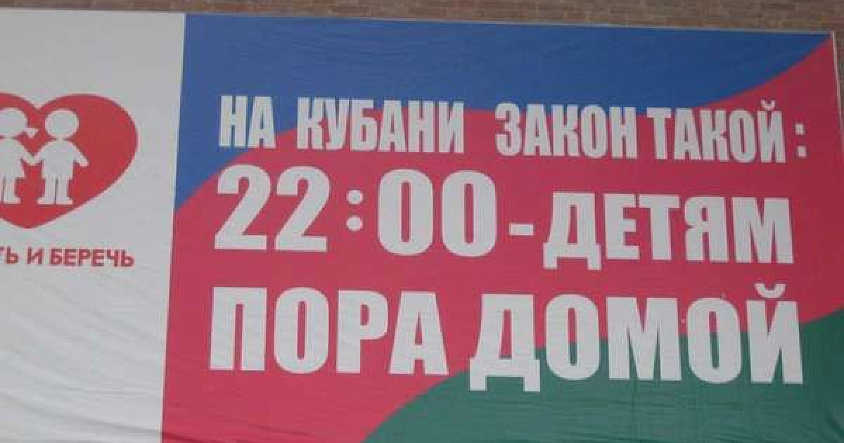 Закон "О мерах по профилактике безнадзорности и правонарушений несовершеннолетних в Краснодарском крае" вступил в силу с августа 2008 г. Согласно документу, детям до семи лет запрещено находиться в общественных местах без сопровождения родителей или уполномоченных ими лиц в любое время суток, детям до 14 лет — после 21:00 по московскому времени, подросткам до 17 лет — после 22:00.