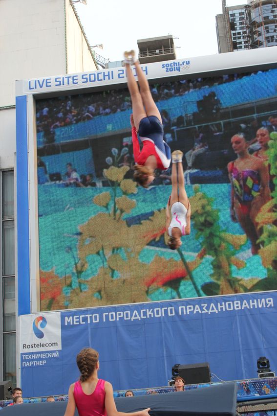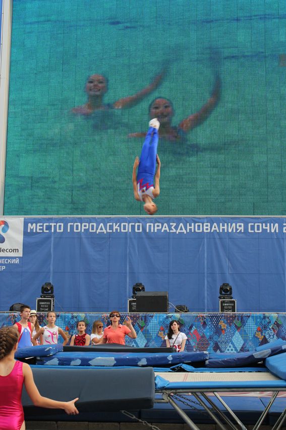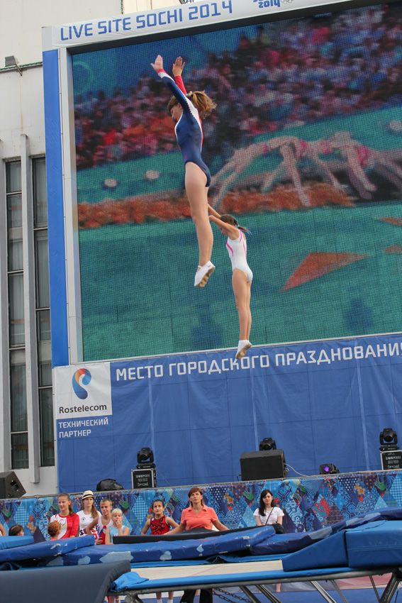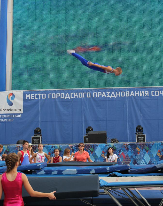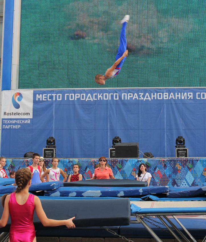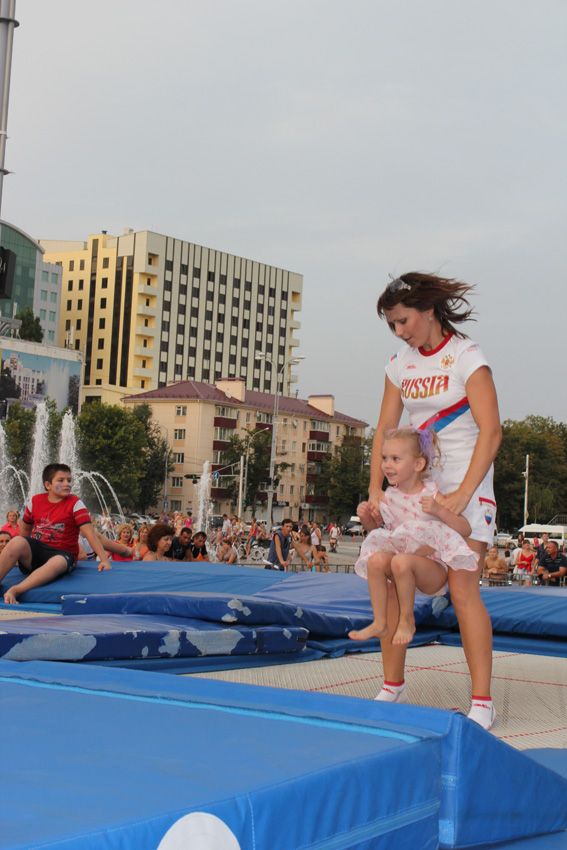 — В краснодарской школе идет смена поколений, даже здесь на площади во время фестиваля мы видели выступления наших юных одаренных спортсменов, которые могут в будущем бороться за медали Олимпиад, — уверен известный краснодарский наставник Сергей Крошка. Причем сам тренер спустился с батута, держа на руках своего двухлетнего сына.