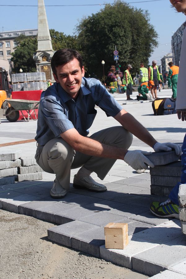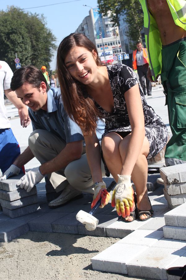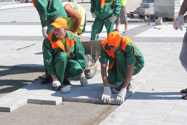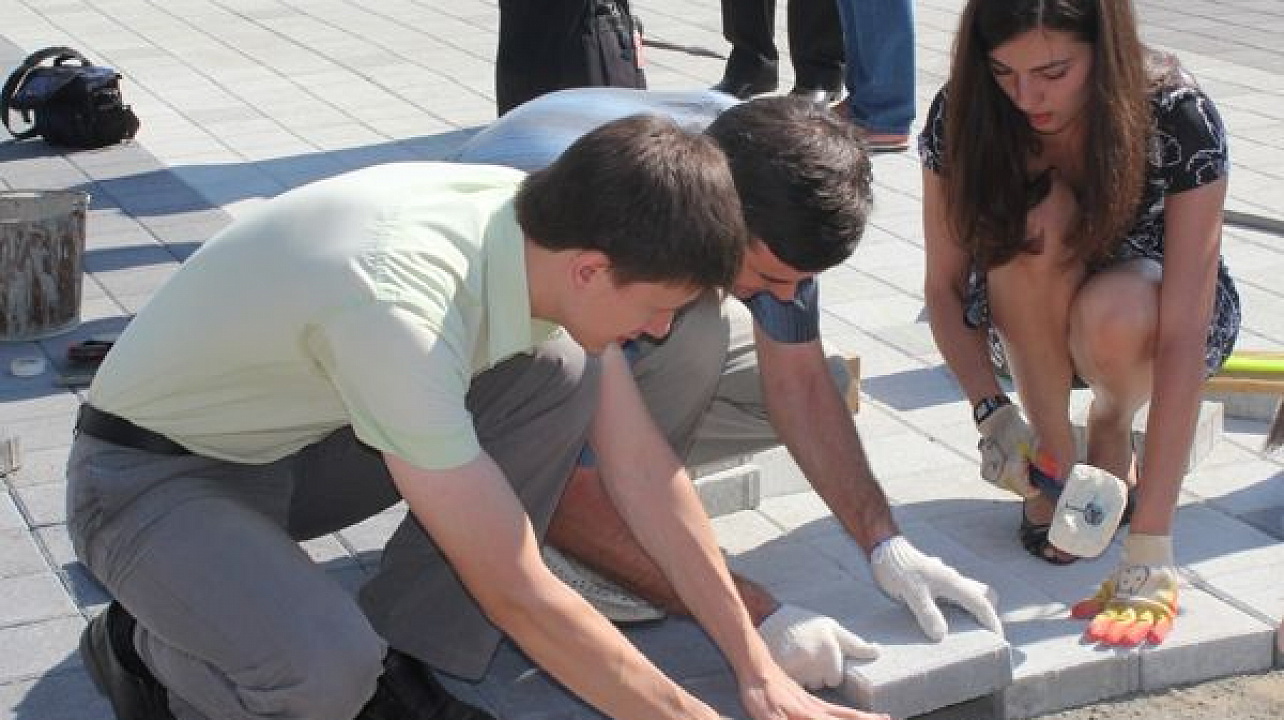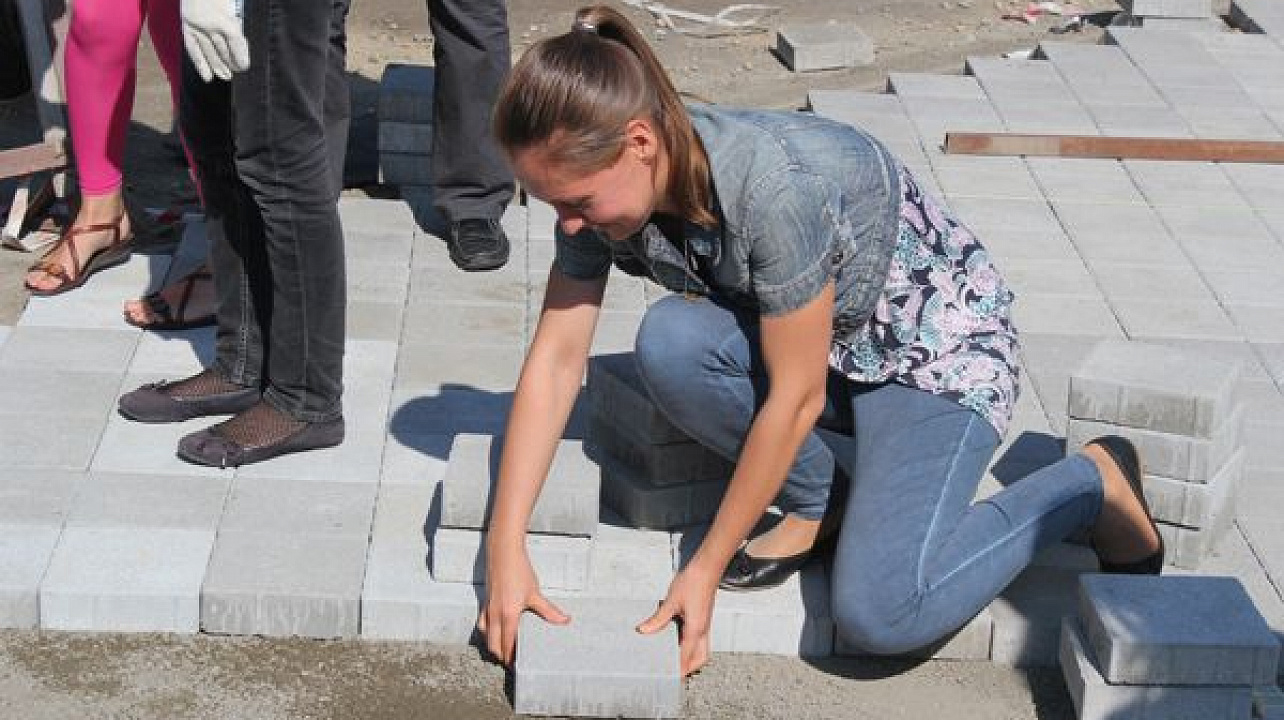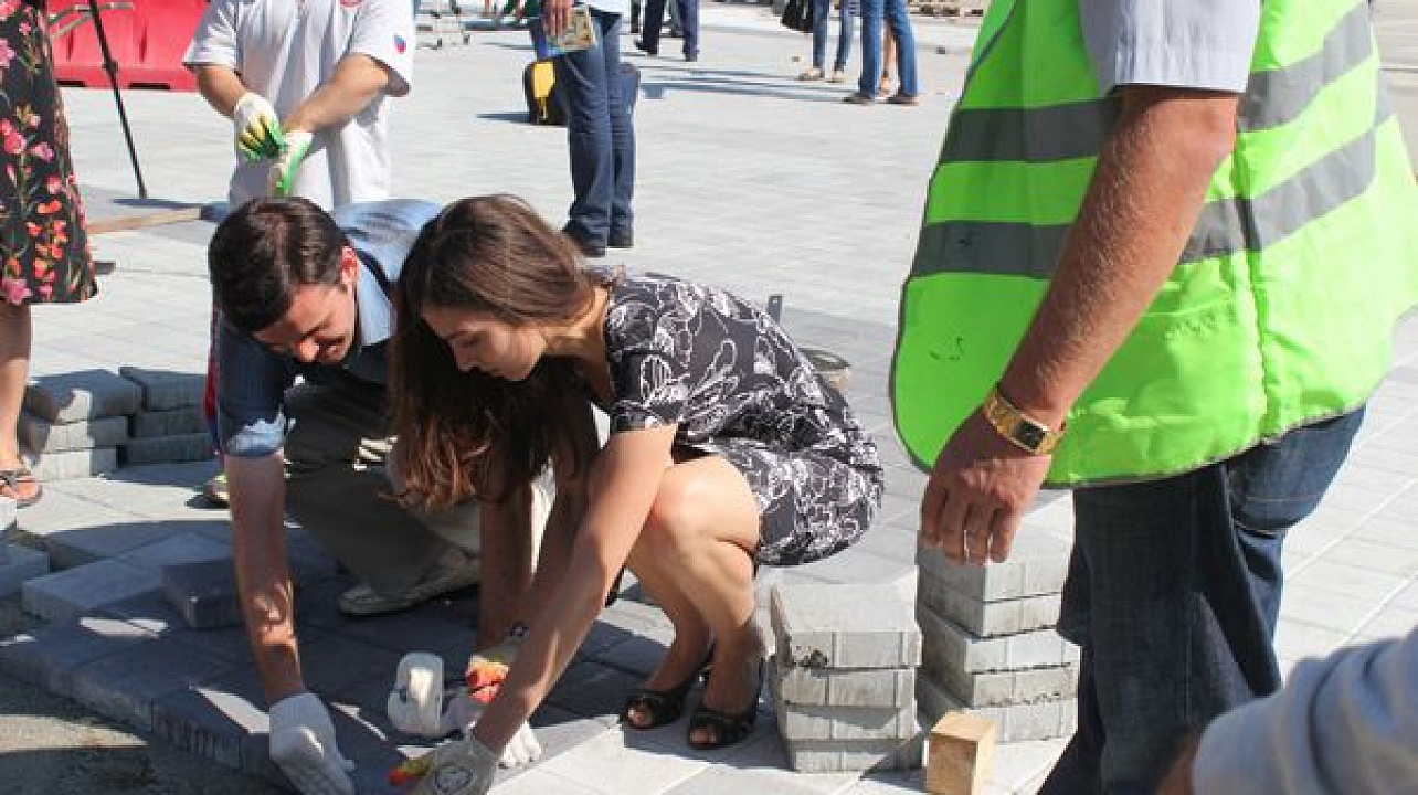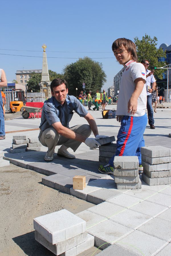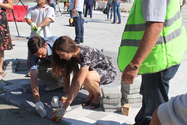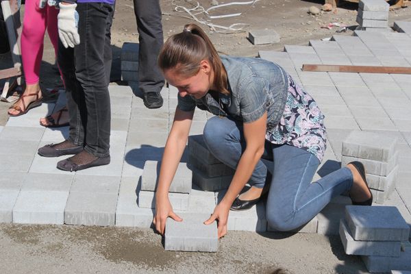 В этот день горожане под руководством опытных инструкторов уложили около 50 квадратных метров плитки.