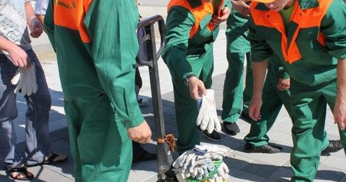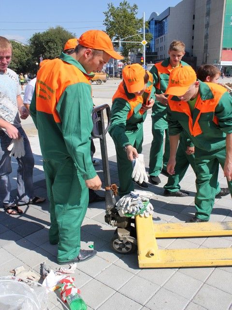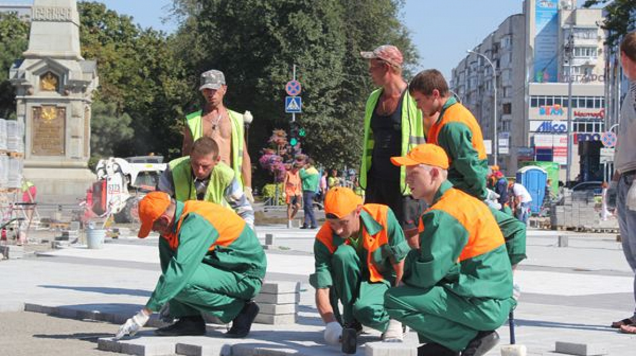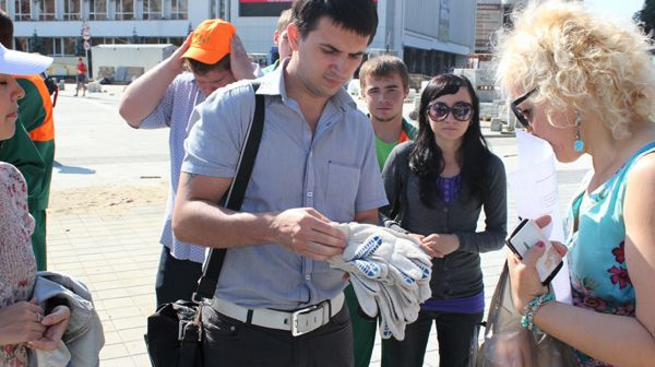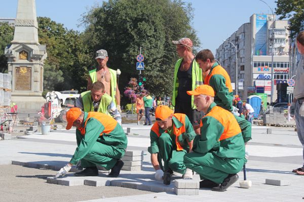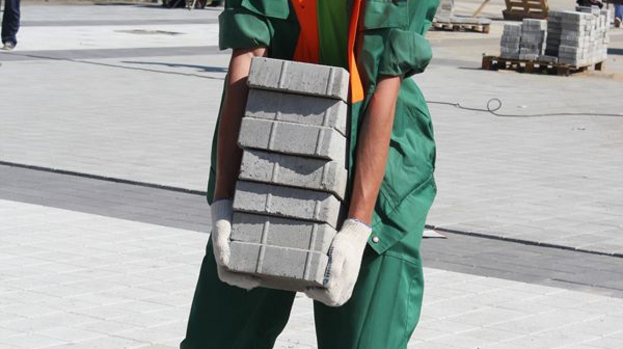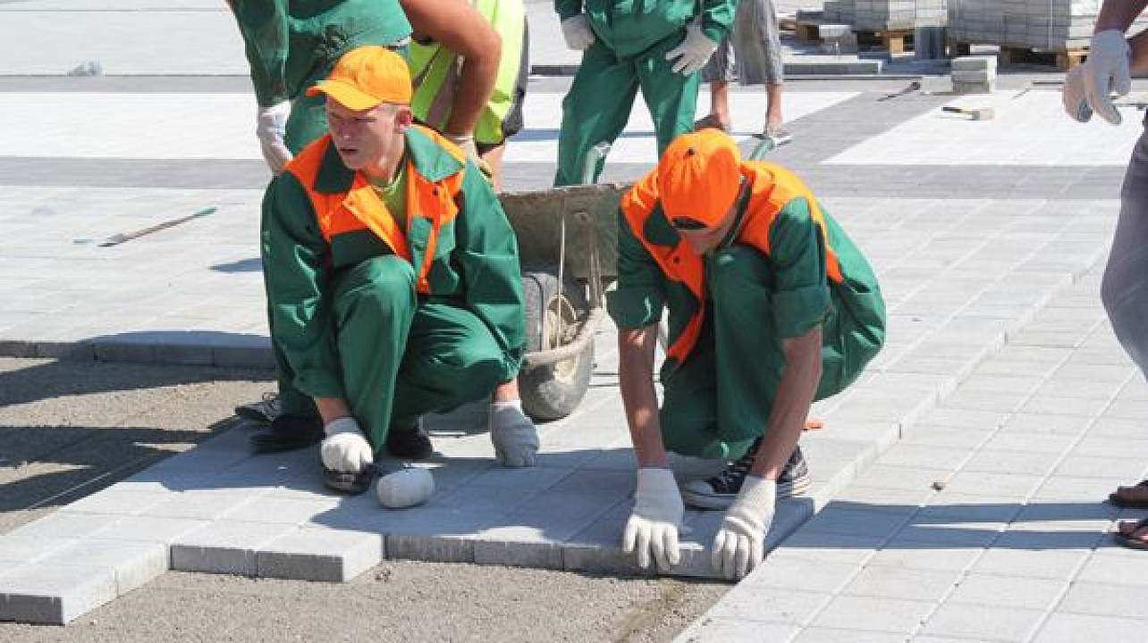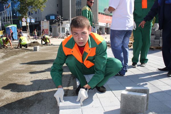 В этот день горожане под руководством опытных инструкторов уложили около 50 квадратных метров плитки.