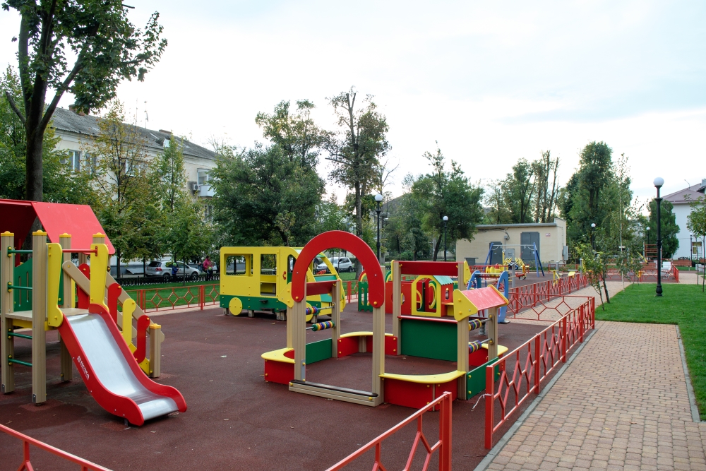 Благоустройство «Студенческого» сквера стартовало 10 июня. Здесь заменили покрытие прогулочных дорожек — уложили почти 3 тыс. кв. м тротуарной плитки. Сделали 2 детские и 3 спортивные площадки с травмобезопасным прорезиненным покрытием. На двух спортплощадках установлены тренажеры, третья — оборудована для волейбола и баскетбола. На одной из детских игровых зон установили большой комплекс «Лагуна» с горками, тоннельным переходом и гимнастическим комплексом.