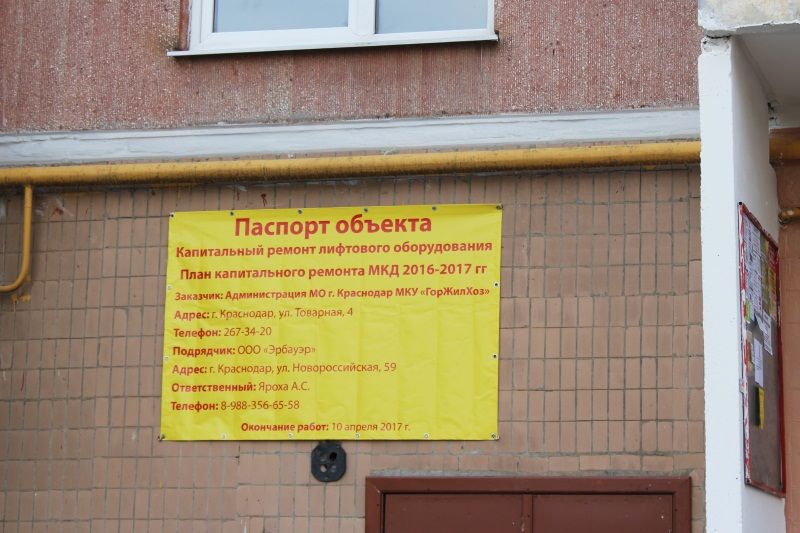 Напомним, в программу капитального ремонта на 2016-2017 годы в Краснодаре включено 122 многоквартирных жилых дома, в том числе — в 21 доме должны быть заменены 76 лифтов.