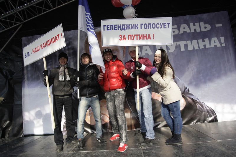 Выступить в поддержку Владимира Путина собрались также активисты трудовых коллективов, представители общественных организаций, молодежных объединений, ветераны, казаки. Многие из них приехали из городов и районов Кубани. Люди скандировали лозунги: «За сильную, стабильную, суверенную Россию!», «Кубань - за Путина!», «Нам есть, что защищать!», «Стране нужен Путин!».