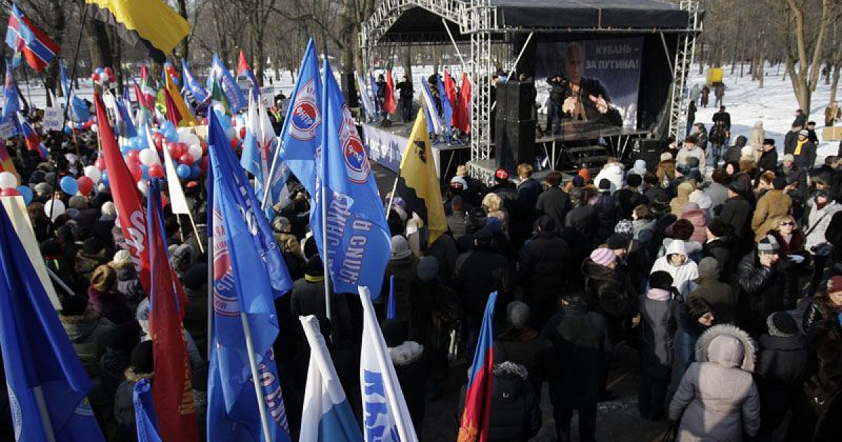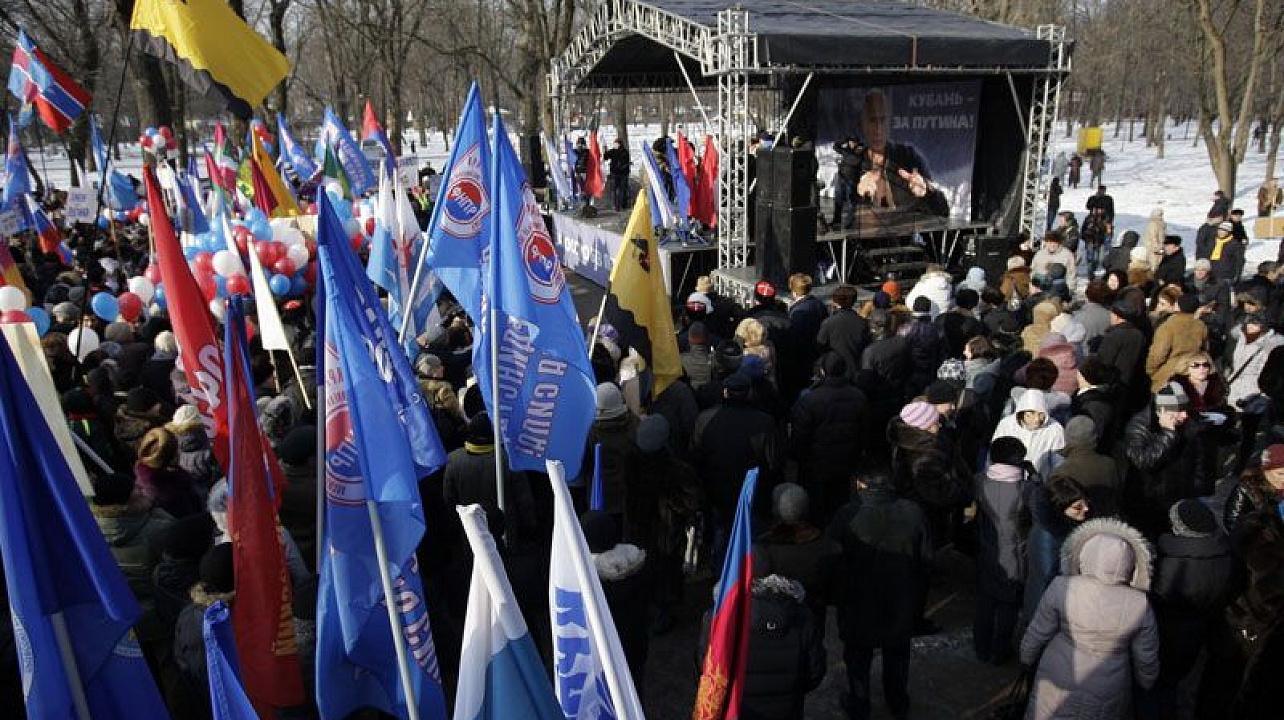 Массовый митинг сторонников кандидата в президенты РФ Владимира Путина 11 февраля провели в Чистяковской роще Краснодара краевое объединение профсоюзов и отделение Общероссийского народного фронта. Участниками акции, по предварительной оценке правоохранительных органов, стали около 7,5 тыс. человек при заявленной численности в три тысячи. Нарушений общественного порядка и провокаций не зафиксировано.