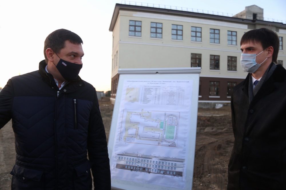 11 декабря 2020Учеников новая школа на 1100 мест в Новознаменском жилом районе примет в сентябре 2021 г. Образовательное учреждение строят по уникальному для Краснодара проекту. Двухэтажный корпус с двумя спортзалами и тренажёрным залом будет соединён с основным зданием школы переходной галереей. Во время утреннего рабочего объезда ход строительных работ проконтролировал глава Краснодара Евгений Первышов.