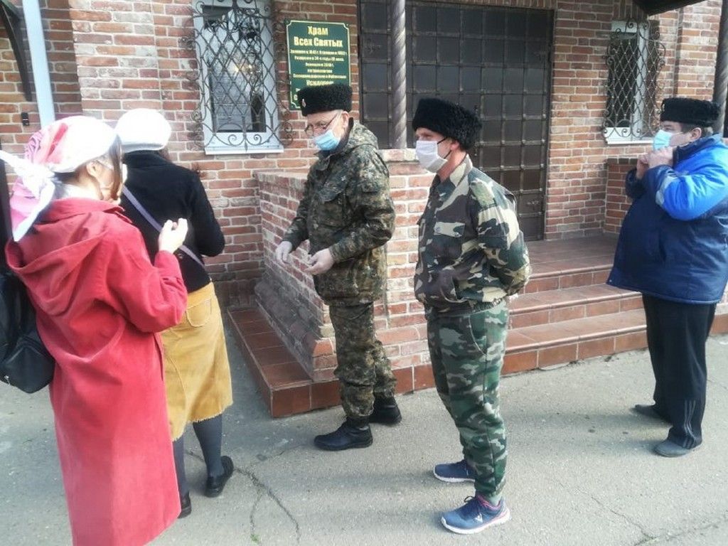 Кроме того, 12 апреля, в день православного праздника Входа Господня в Иерусалим (Вербного воскресенья) работали дополнительные патрули из числа сотрудников полиции и представителей казачества на территориях всех 45 краснодарских храмов. Они контролировали, чтобы прихожане были в защитных масках и соблюдали необходимую социальную дистанцию в 1,5–2 метра.