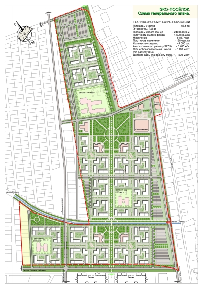 Разместить экопосёлок планируется на площади в 53 га за жилым районом «Немецкая деревня», в районе ул. Средней и ул. Пригородной. Предполагаемая численность населения, по предварительным расчетам, составит 6800 человек, или 128 человек на 1 га (при допустимом нормативе — до 300 человек).