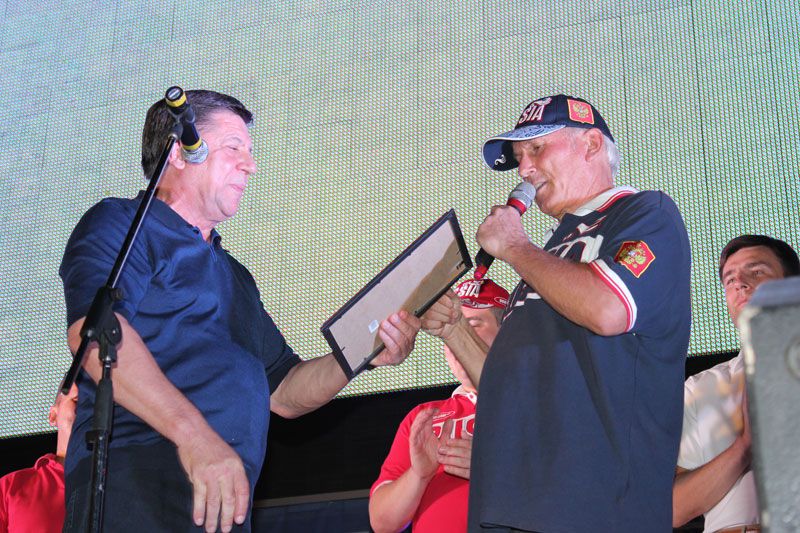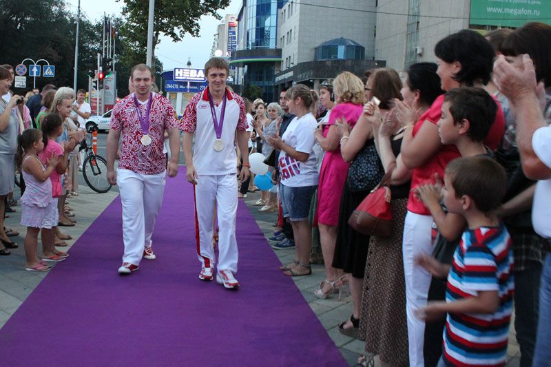 Торжественную часть открыла встреча на сиреневой дорожке «свежеиспеченных» олимпийских призеров Дмитрия Ушакова и Александра Иванова и их автограф-сессия. Поздравить молодых победителей в лучших традициях преемственности поколений пришли краснодарские олимпийские чемпионы и призеры разных лет: обладательница двух олимпийских наград в плавании Любовь Русанова и боксер Шамиль Сабиров, гандболисты Станислав Кулинченко и Олег Ходьков, легкоатлет Валерий Юрченко.